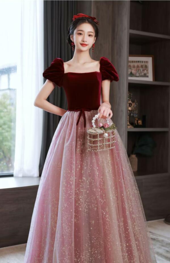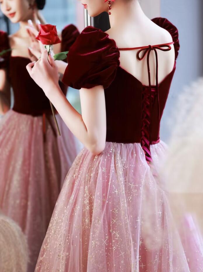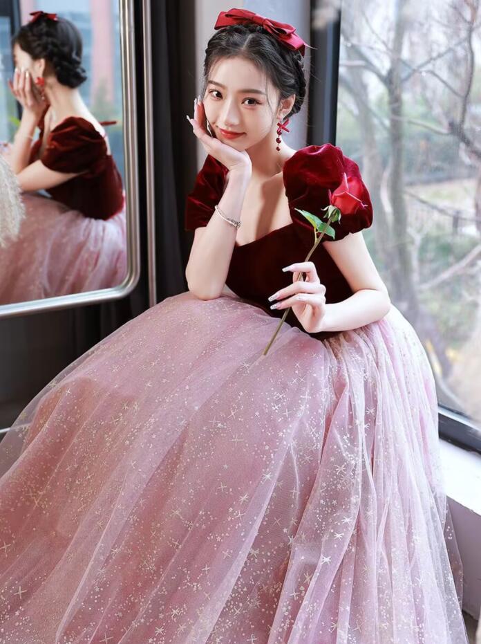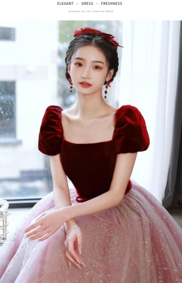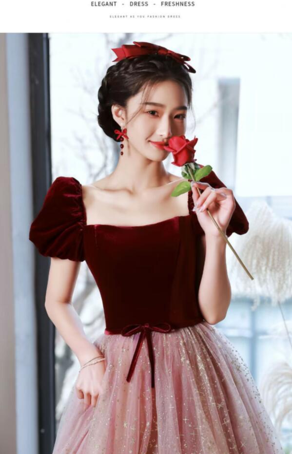イブニングドレス ピアノ発表会 ドレス ワイン赤 結婚式ドレス 発表会ドレス Aライン カクテルドレス パーティードレス 中学生 韓国 お呼ばれドレス