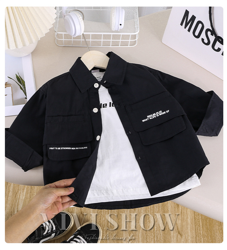 キッズ シャツ 長袖 トップス カジュアルシャツ アウター 動きやすい 着やすい ノー かわいい シンプル おしゃれ あわせやすい