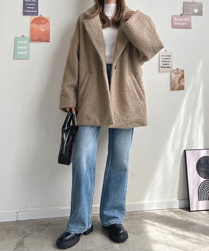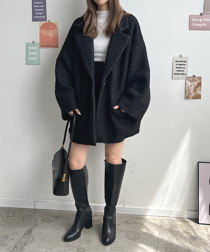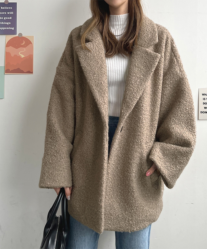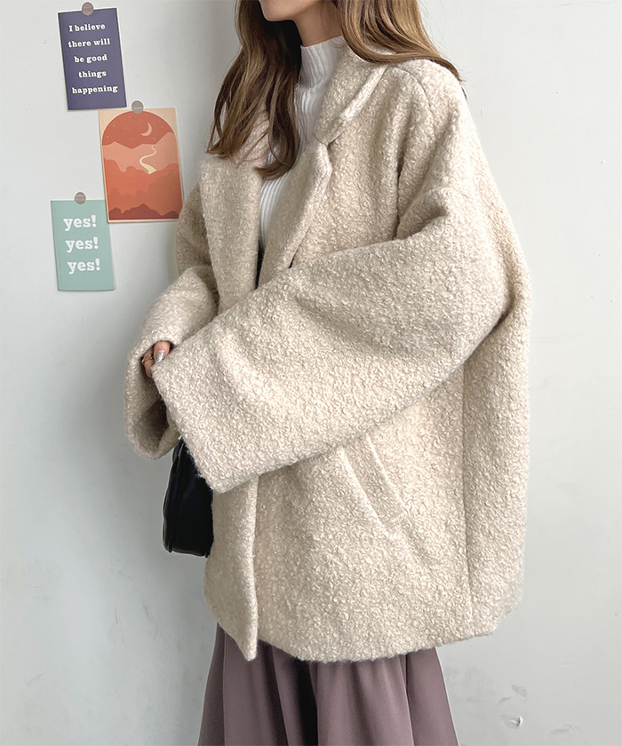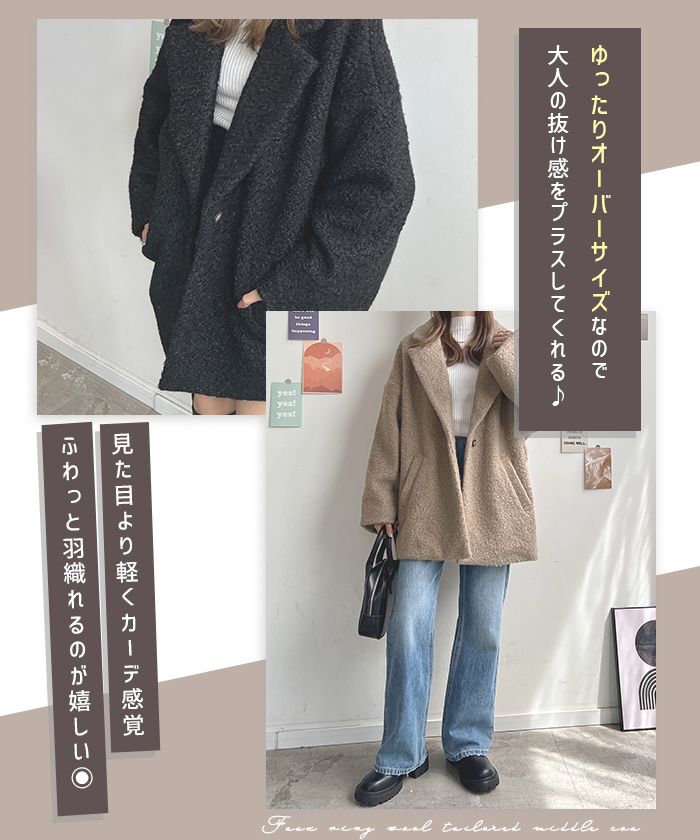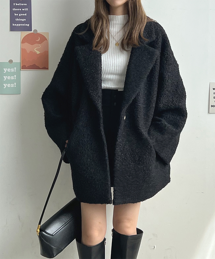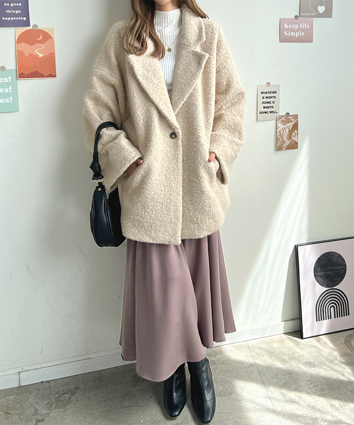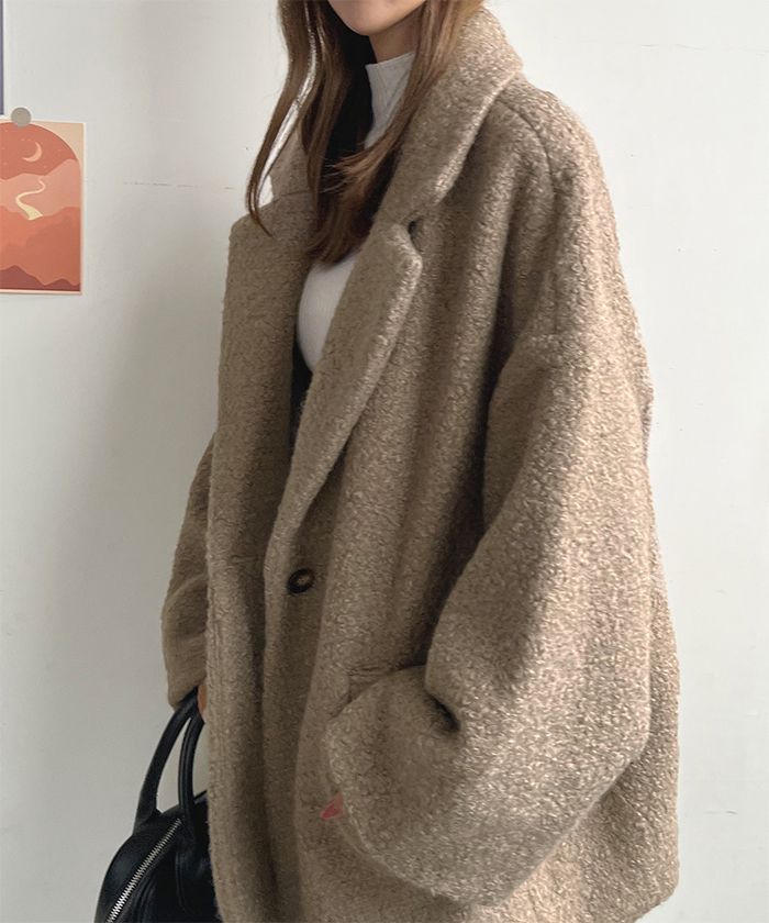 テディベアのような触り心地のもこもこであったかミドルコート♪