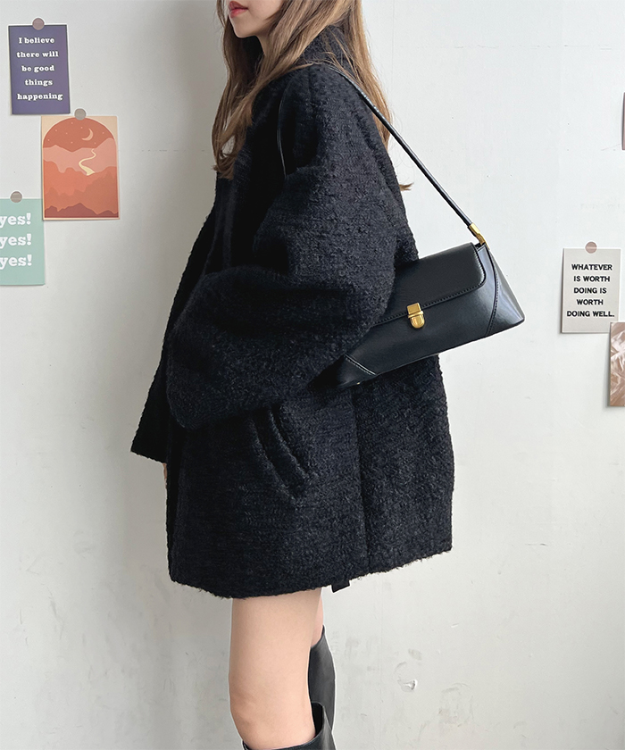 存在感のあるアウターなので、シンプルなスタイルに合わせるだけで旬のスタイルが決まります◎