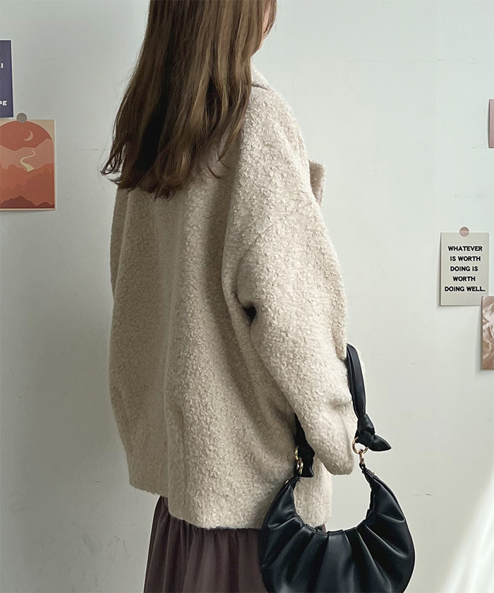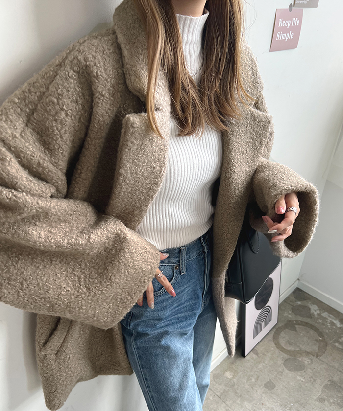 くるんと丸まった毛足が優しく保温感のあるアイテム。
