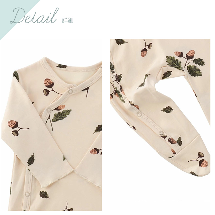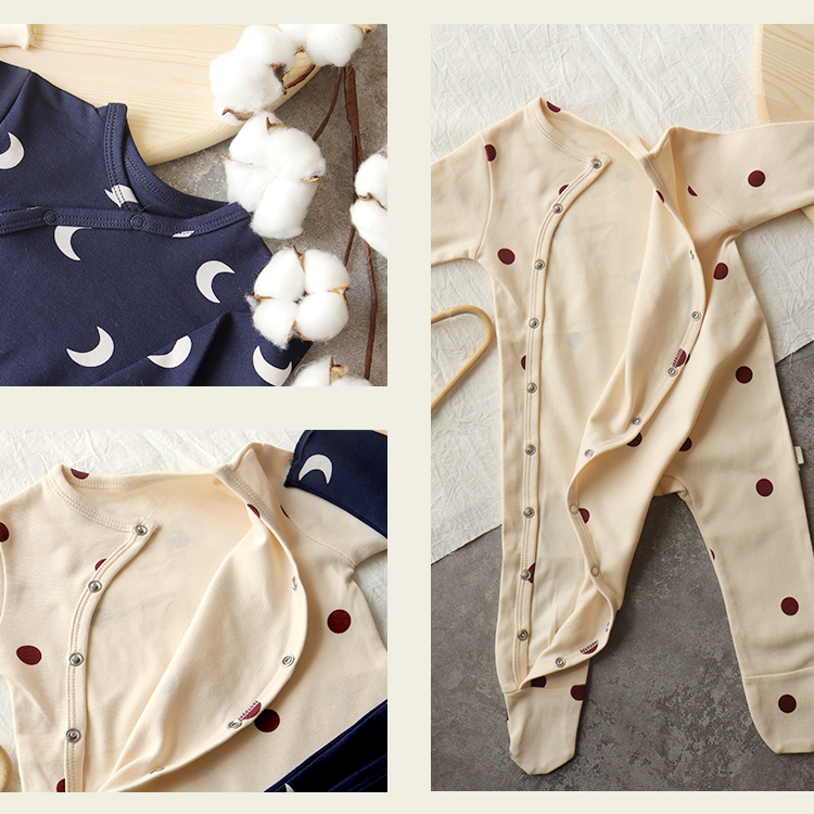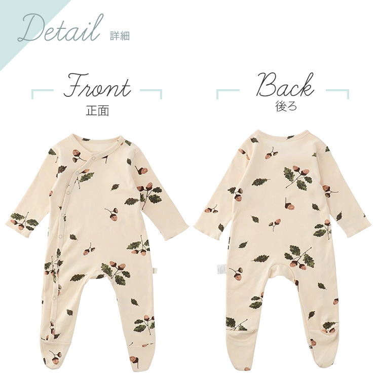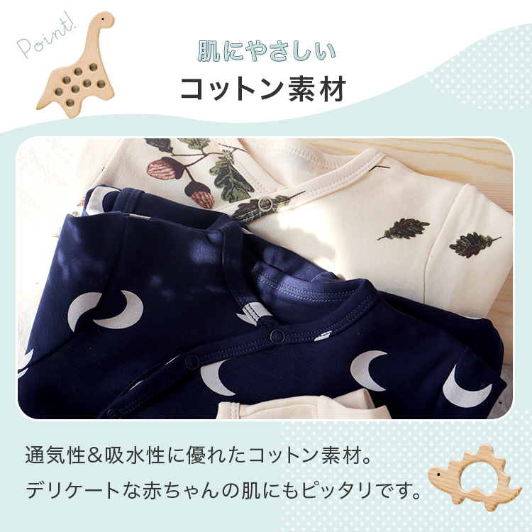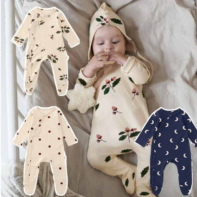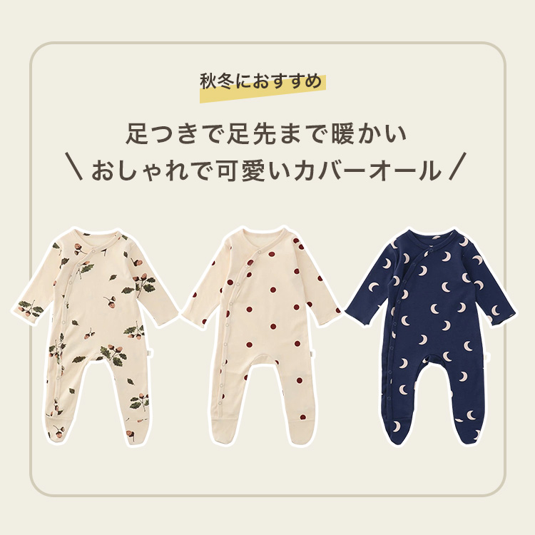 ジタバタ良く動く元気な赤ちゃんには、お腹も足先も出ずに暖かいカバーオールがおすすめです。