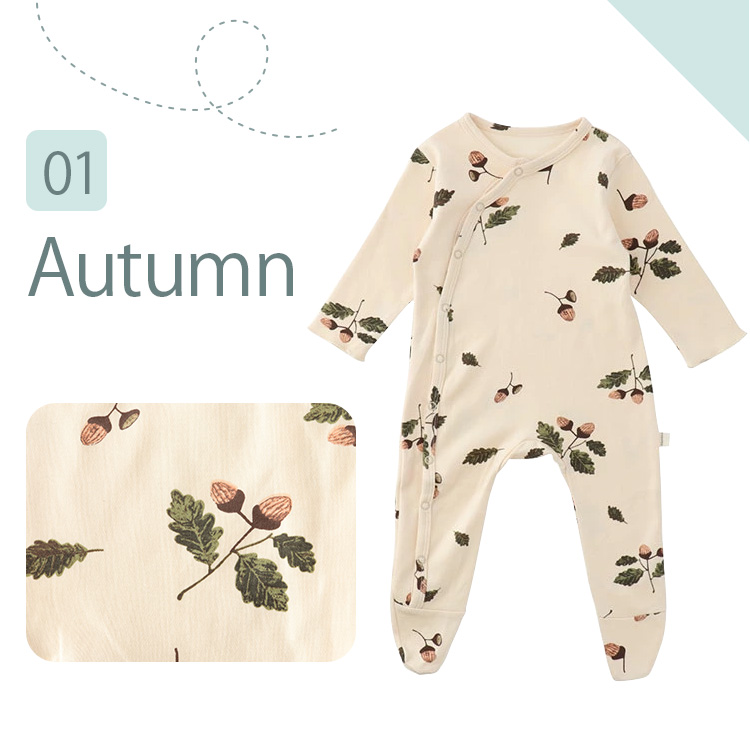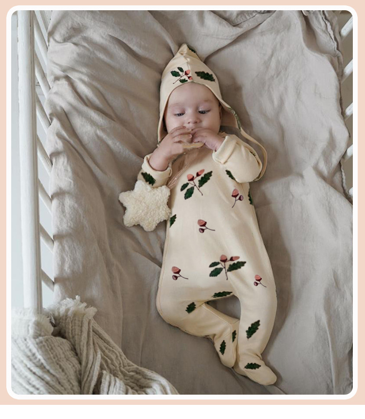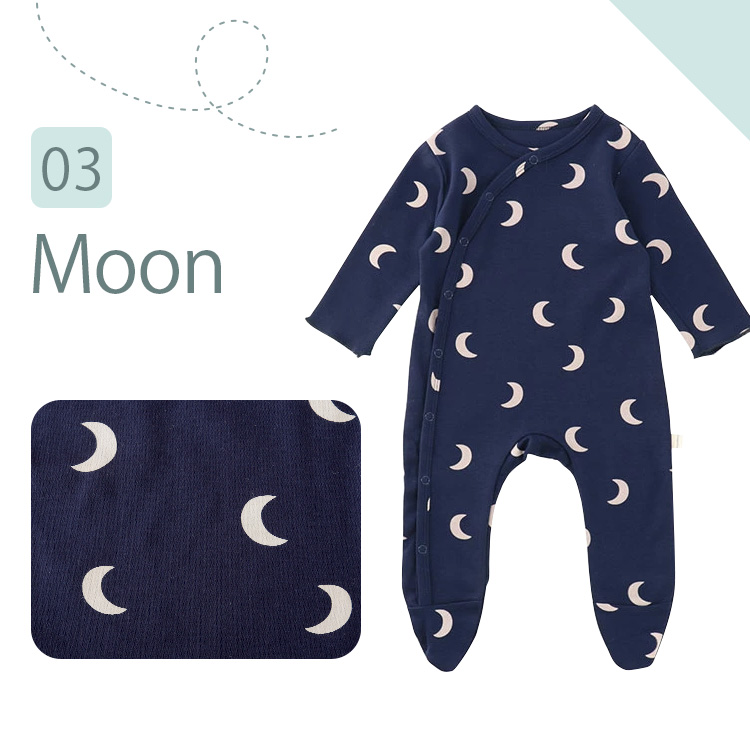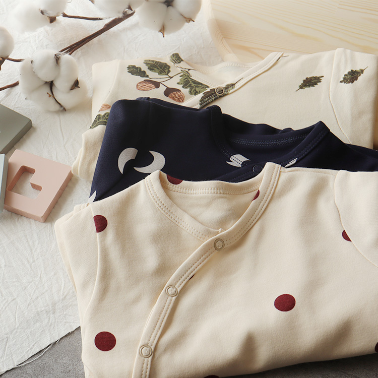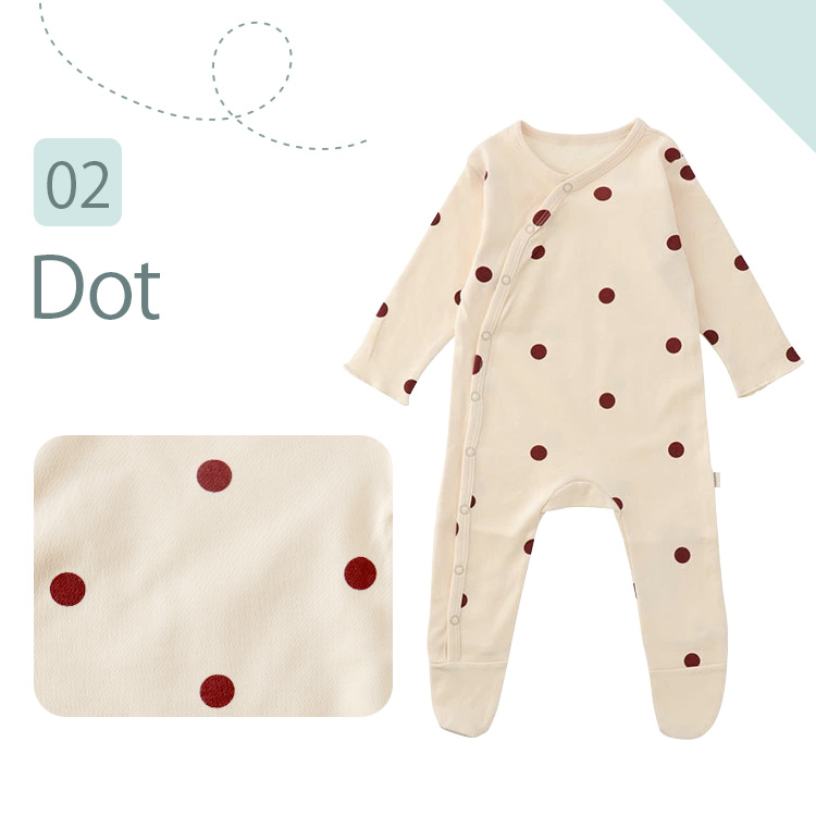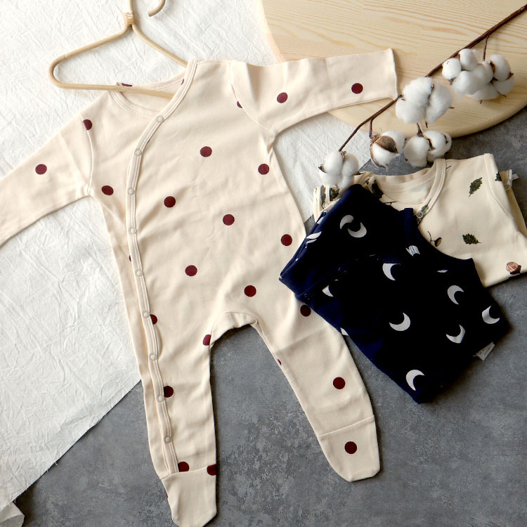 ジタバタ良く動く元気な赤ちゃんには、お腹も足先も出ずに暖かいカバーオールがおすすめです。