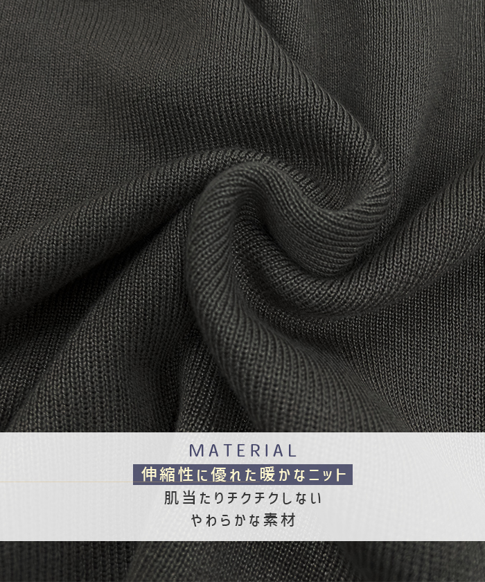 伸縮性に優れた暖かなニットで作られているので動きやすく足さばきも◎アクティブに動く日にはもちろん、 チクチクしないニットなのでお家時間にもおすすめです♪また、シンプルで無駄のないデザインなので合わせるアクセや小物次第で、きれいめにもカジュアルにも着こなせるアイテムです