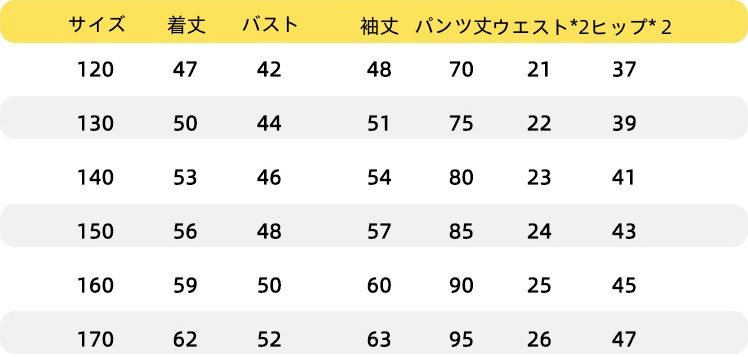 サイズ 120CM 130CM 140CM 150CM 160CM 170CM