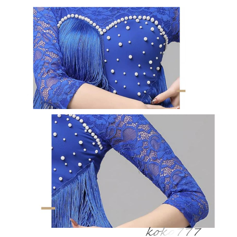 ドレス レディース ワンピース ラテンダンス フリンジ パーティー 発表会 舞台衣装 レース モダンダンス 公演 ナショナルダンス パール 洋服 コスチューム