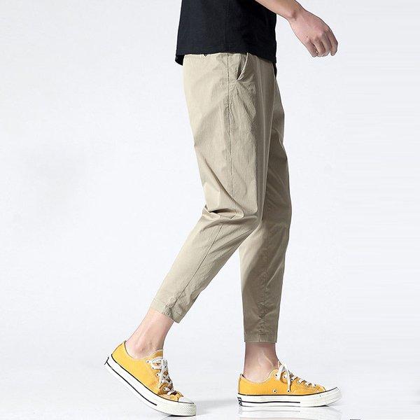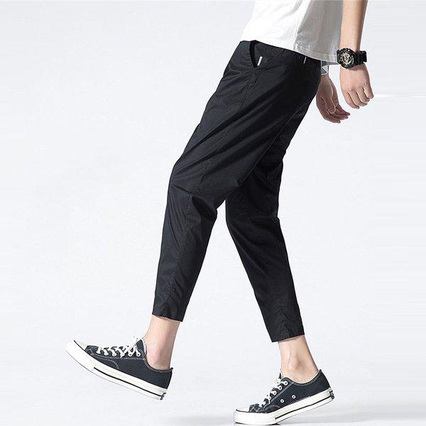 アンクルパンツ メンズ ボトムス 無地 ストレッチ 綿 快適