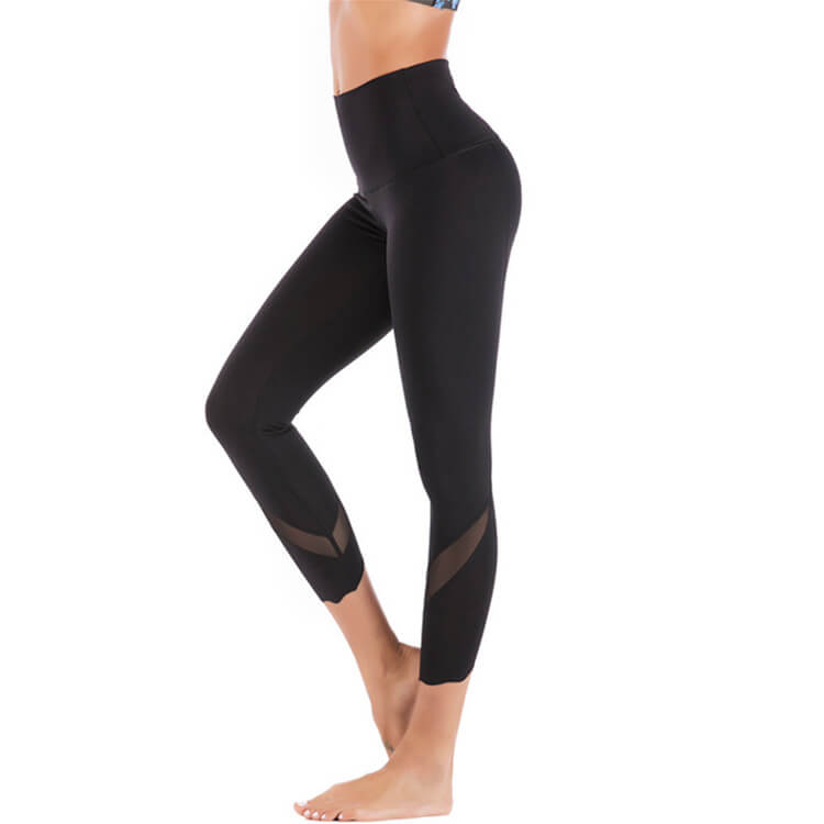ホットヨガにおすすめ!美ボディ見せのタイトフィットメッシュ切り換え七分丈ヨガパンツ。