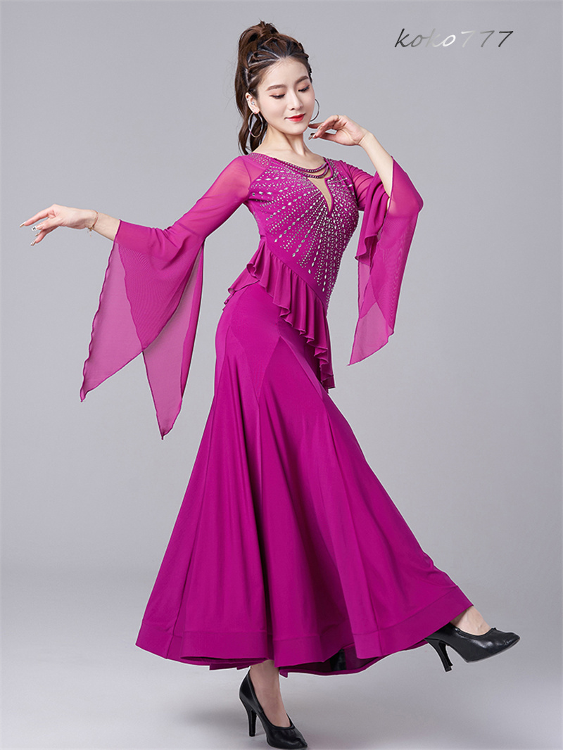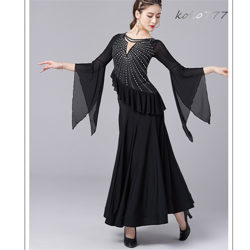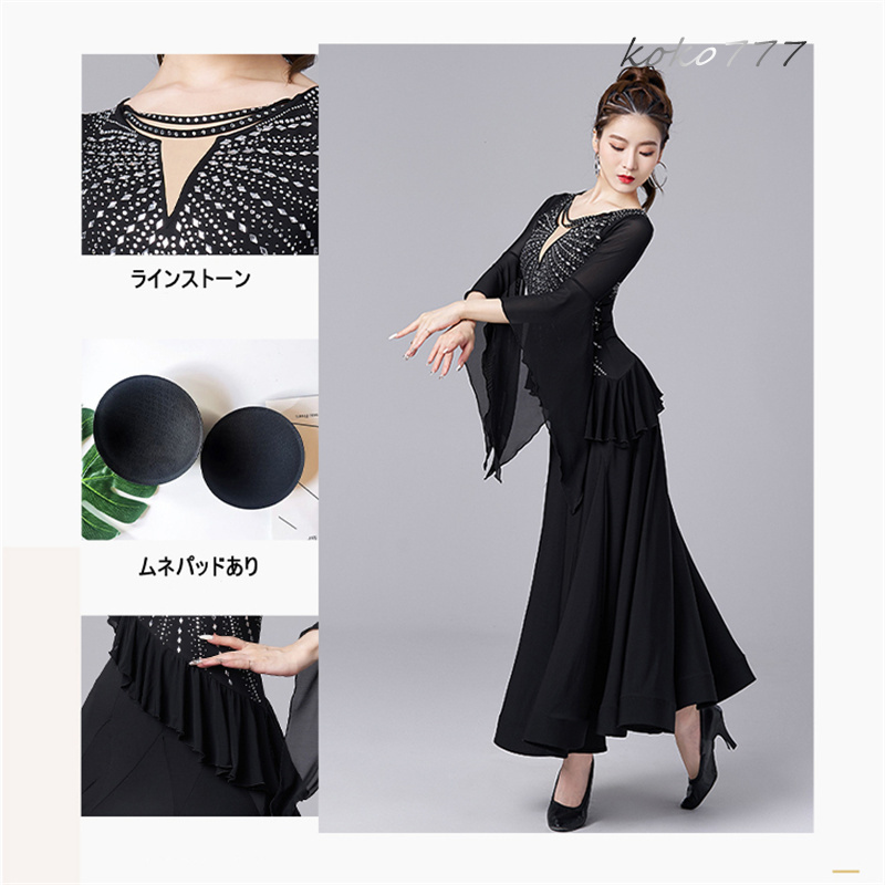 ロングドレス レディース ワンピース ラテンダンス タンゴ フリル 舞台衣装 公演 洋服 パーティー モダンダンス ナショナルダンス コスチューム 発表会 ワルツ