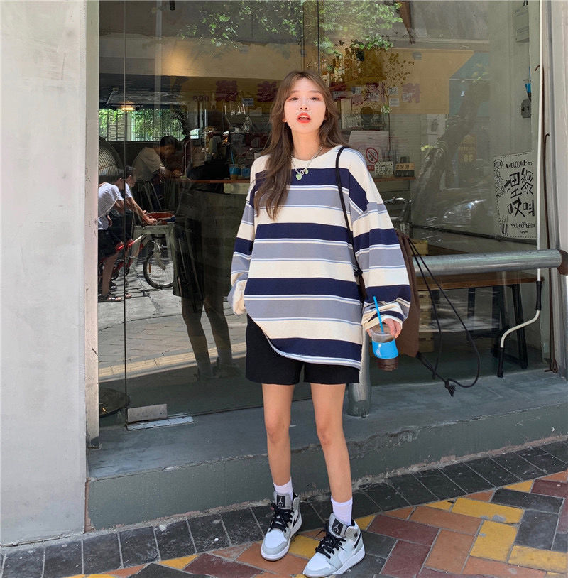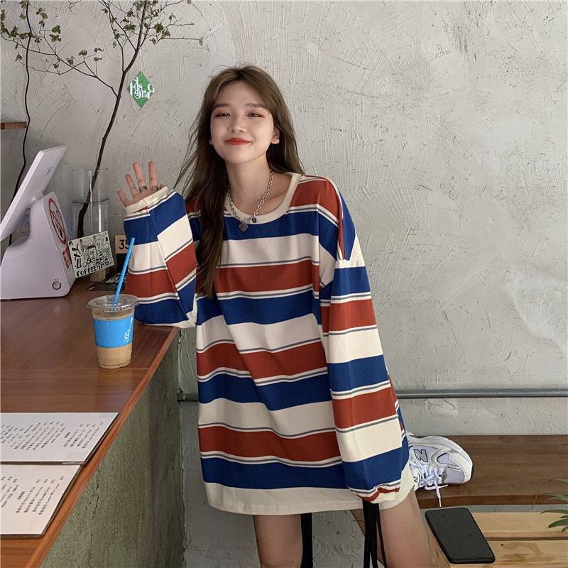 トレーナー レディース ゆったり スウェット カットソー 長袖 可愛い おしゃれ 大きいサイズ ストライプ プルオーバー カジュアル Tシャツ ビッグシルエット