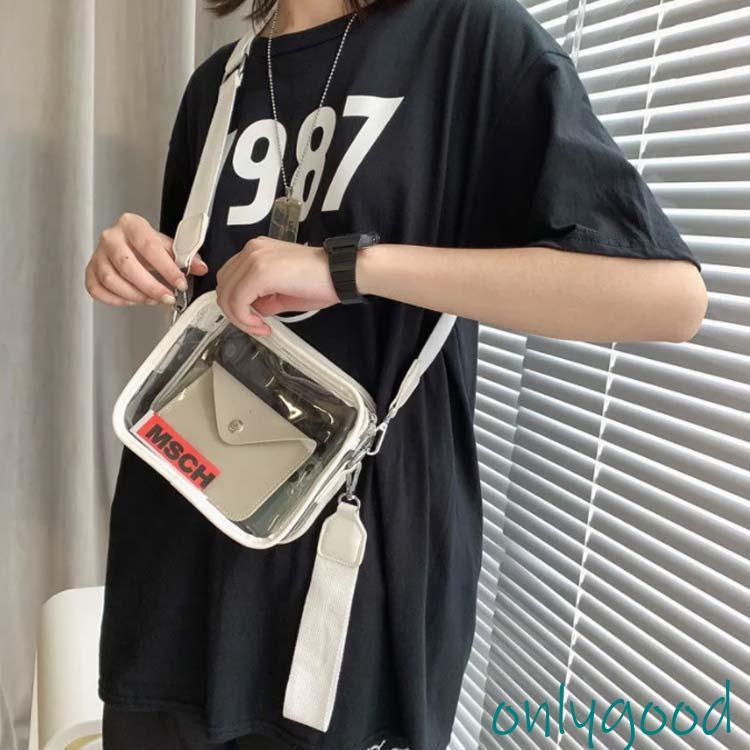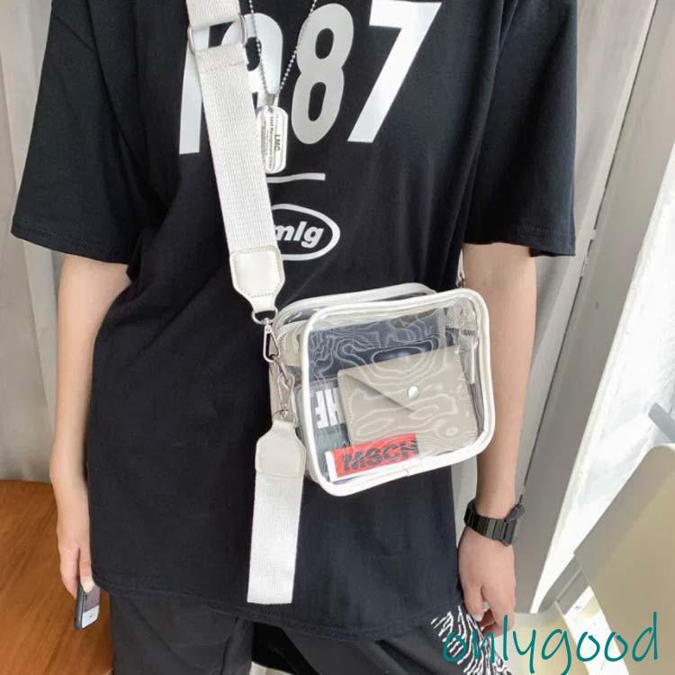 クリアショルダーサコッシュ2WAY PVCビニールレディース メンズ おしゃれ 斜めかけボディバッグ