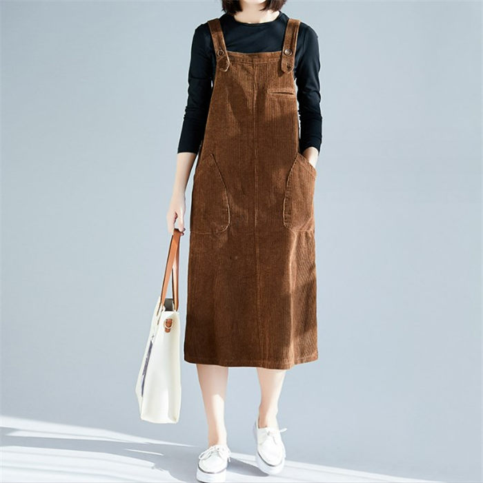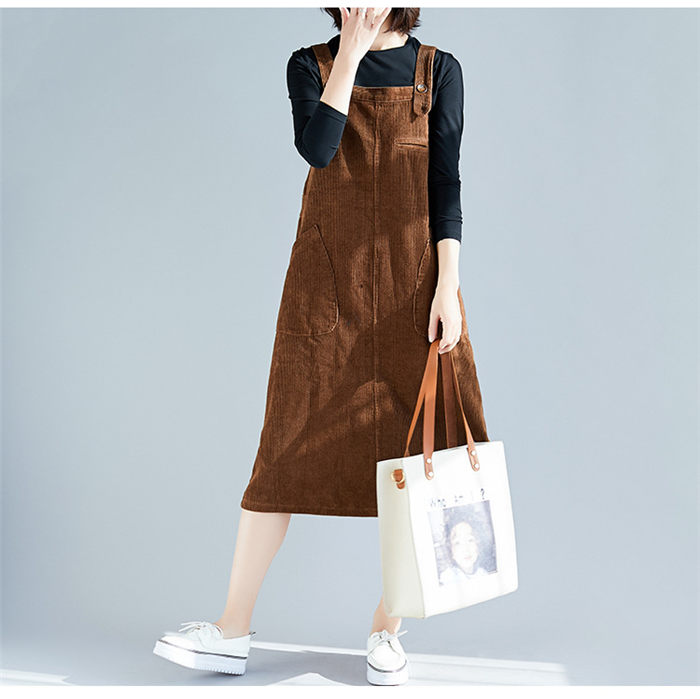 サロペット ジャンパースカート ミディアムサロペット レディース ワンピース 秋冬 コーデュロイ 痩せる効果 大きいサイズ サロペットスカート