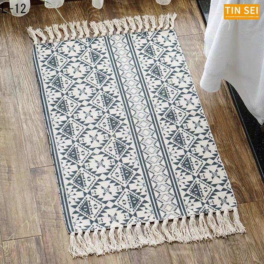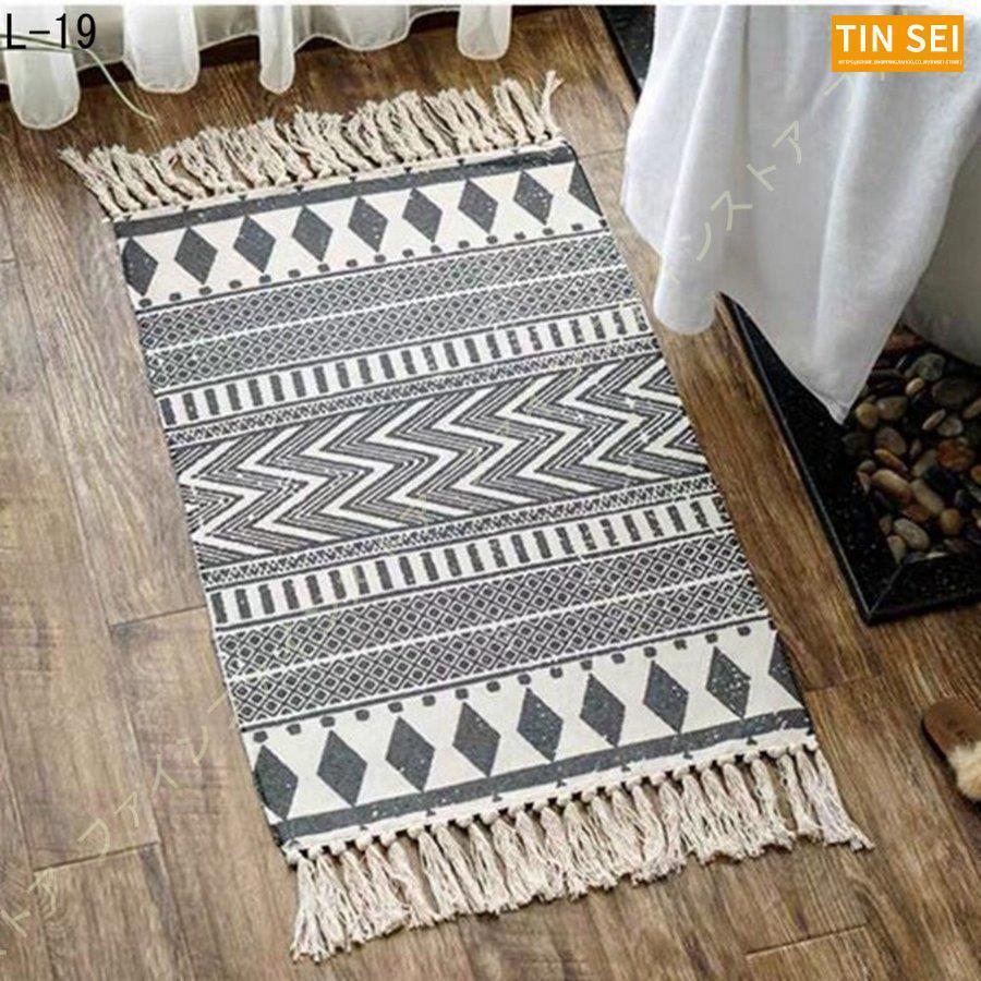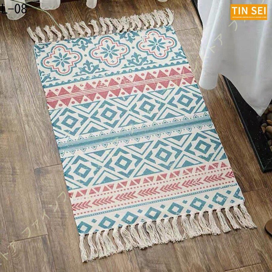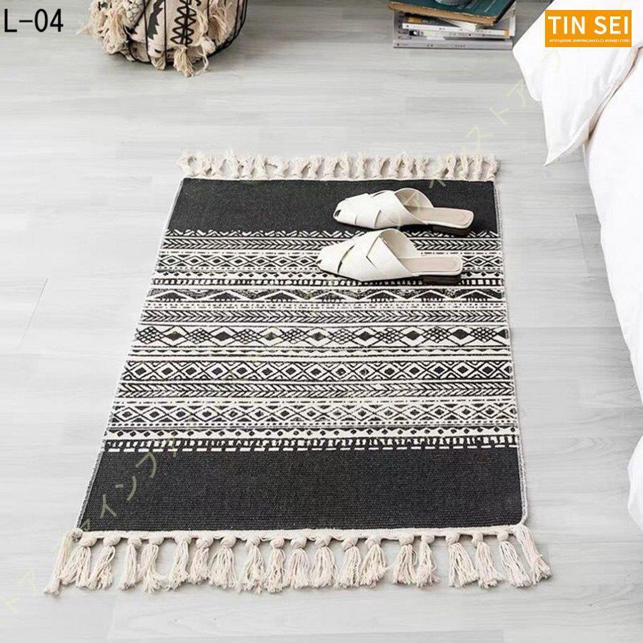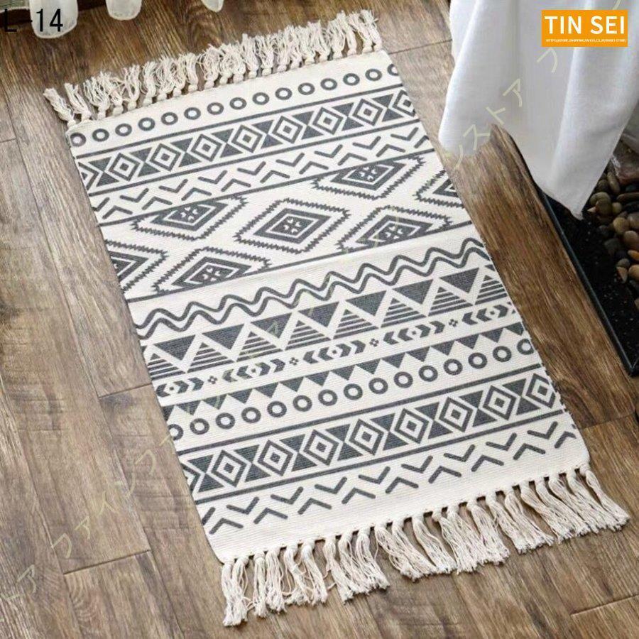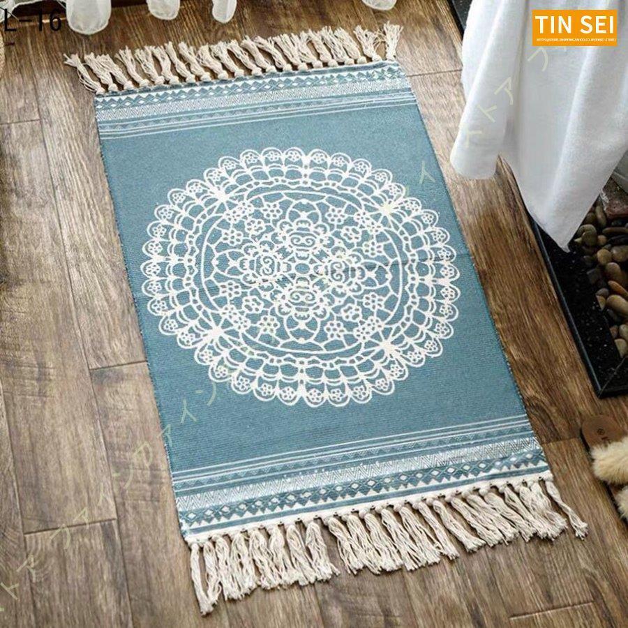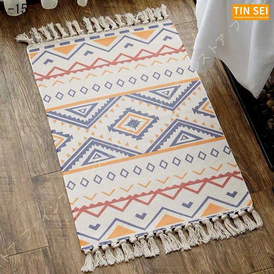 玄関マット 室内 洗える 綿 おしゃれ フリンジ 滑り止め付き ドアマット ナチュラル かわいい 柄 インド綿 おしゃれ 長方形 ラグマット ラグ 夏用 エスニック