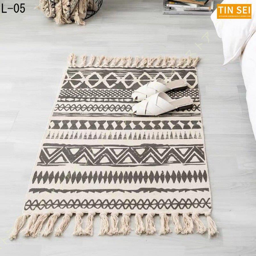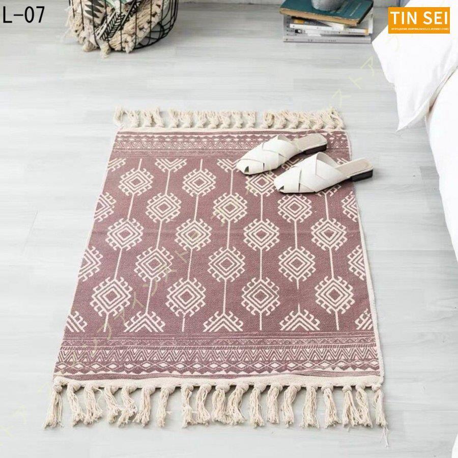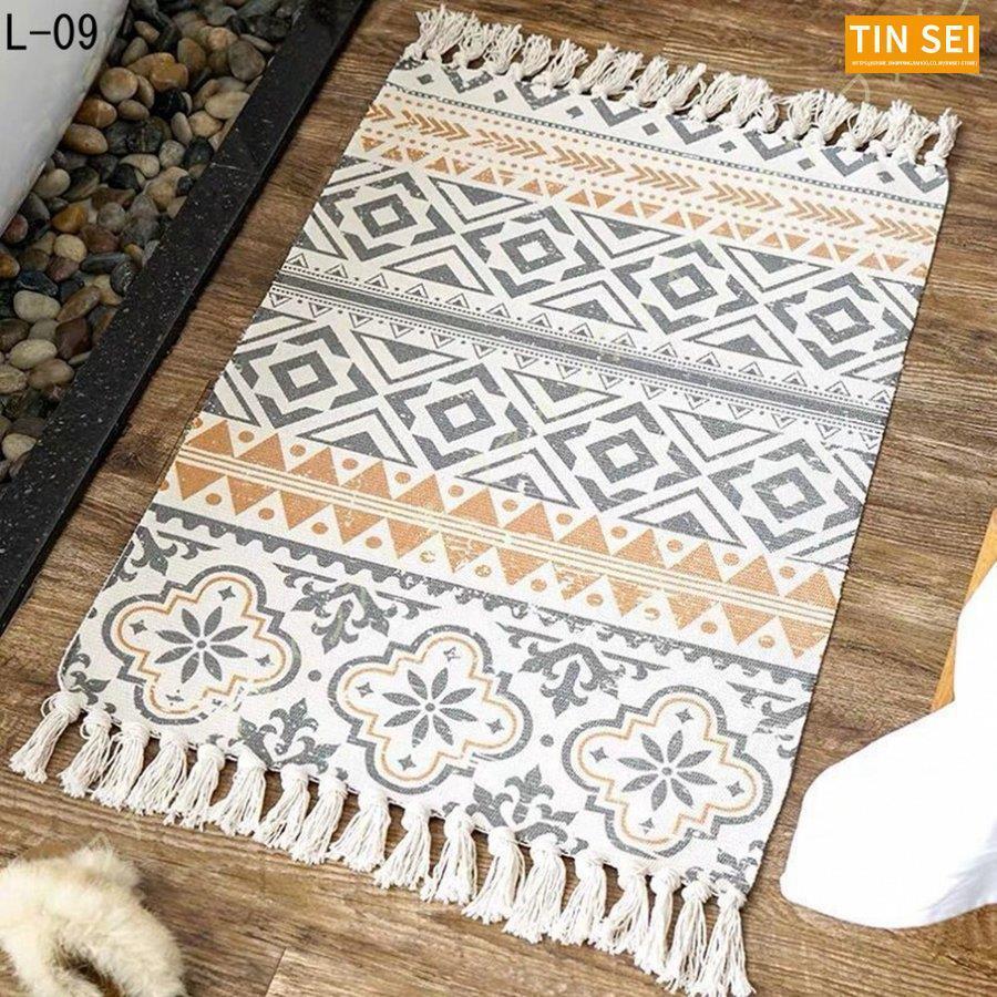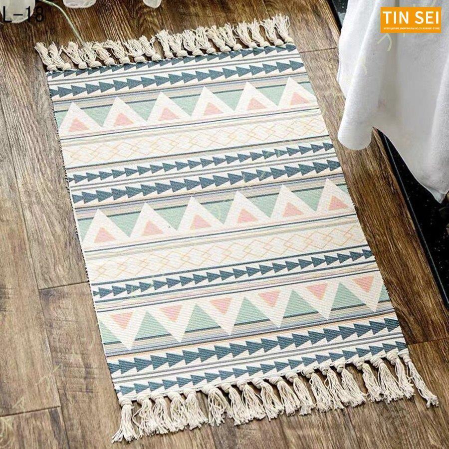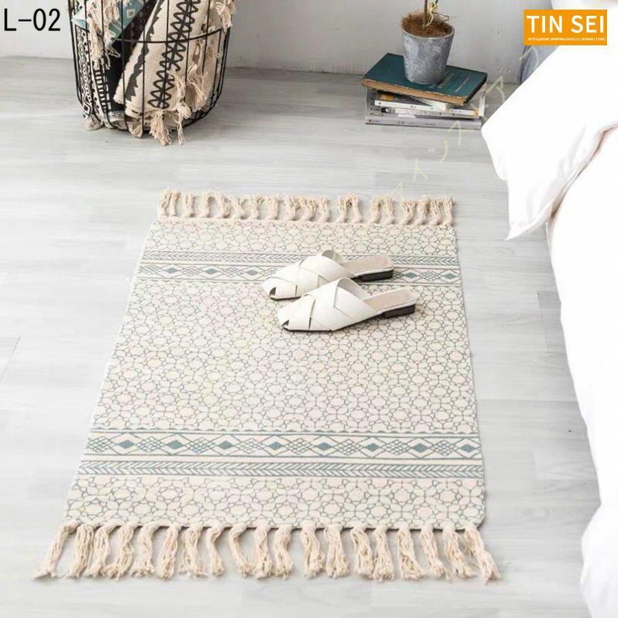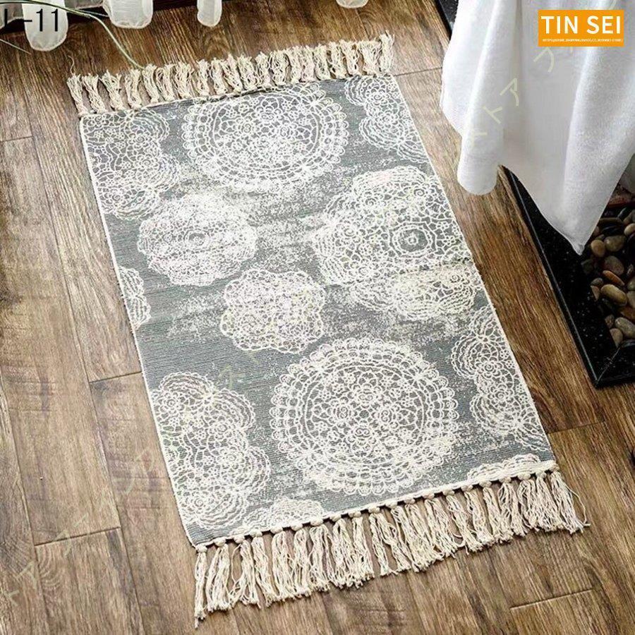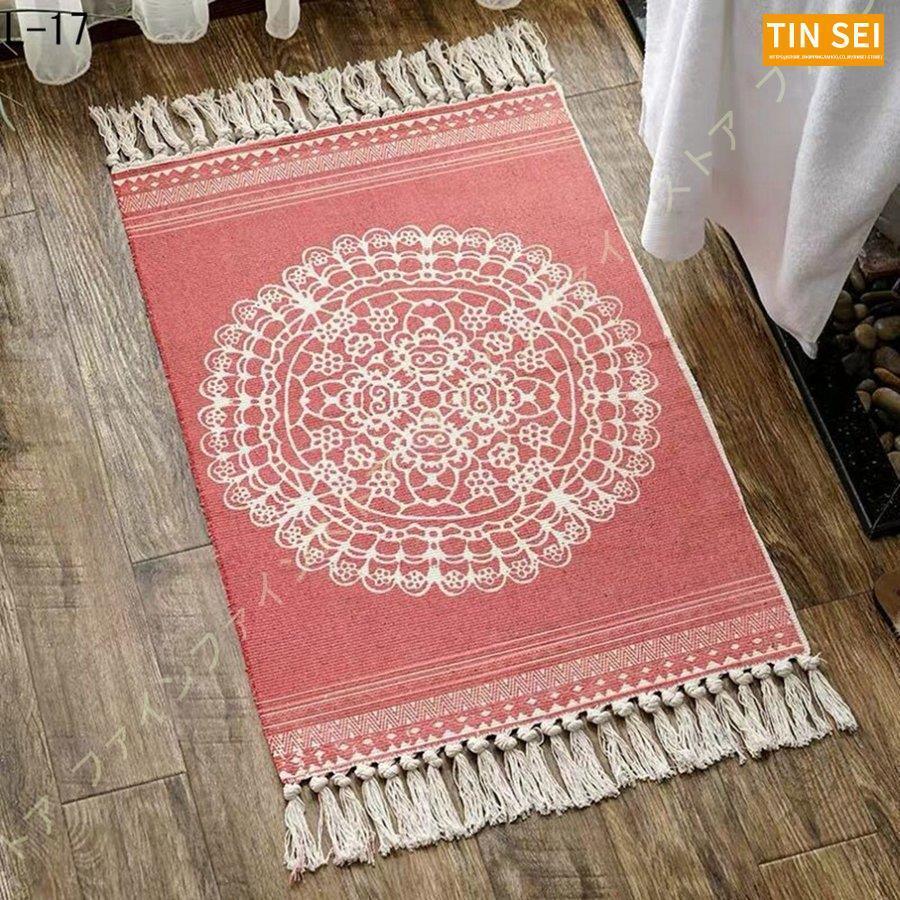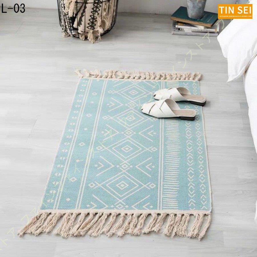 玄関マット 室内 洗える 綿 おしゃれ フリンジ 滑り止め付き ドアマット ナチュラル かわいい 柄 インド綿 おしゃれ 長方形 ラグマット ラグ 夏用 エスニック
