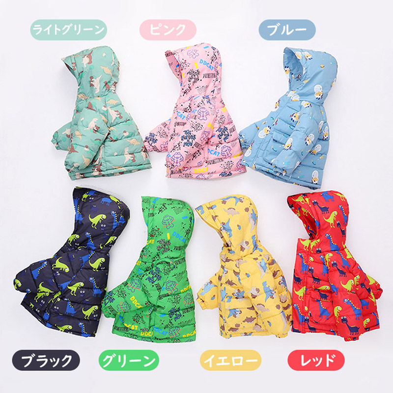 キーワード ウインドブレーカー リバーシブル ポケット付き 中綿ジャケット キッズ 秋冬着 ボーイズ コート 軽い 軽量 秋 ダウンコート 中綿コート 男の子 女の子 ダウンジャケット ダウンパーカー パーカー 中綿コート 防寒コート フード付き ジャケット 男児 女児 通園 通学 入学 防寒 冬 裏ボア アニマル柄 恐竜柄 グリーン ピンク イエロー レッド ブルー ブラック 90 100 110 120 130CM