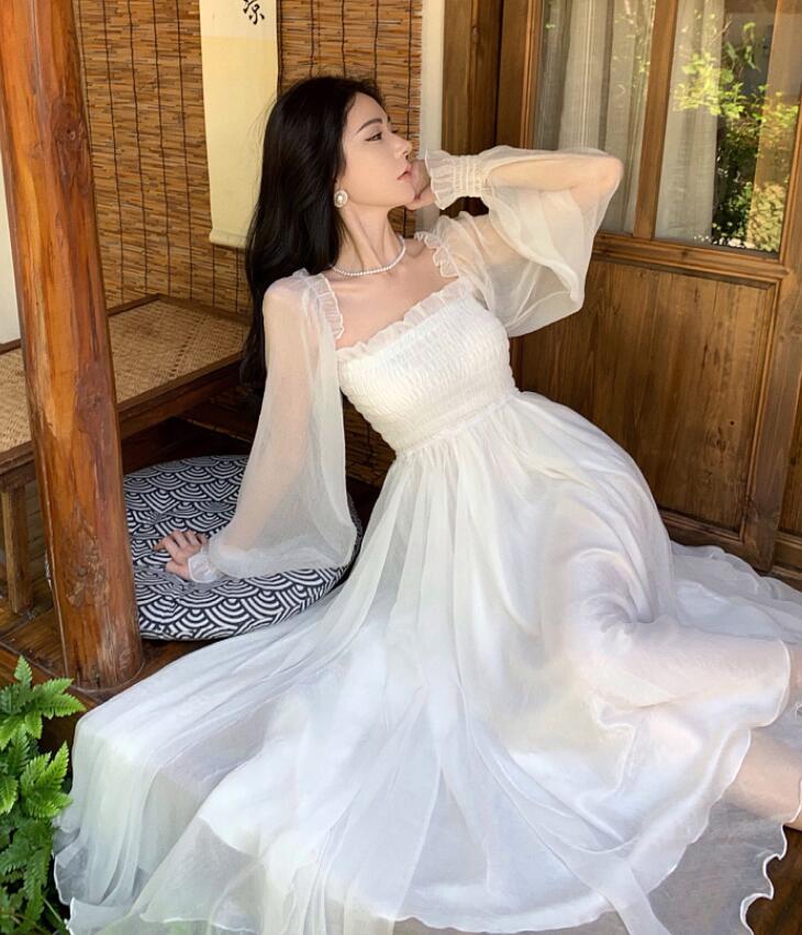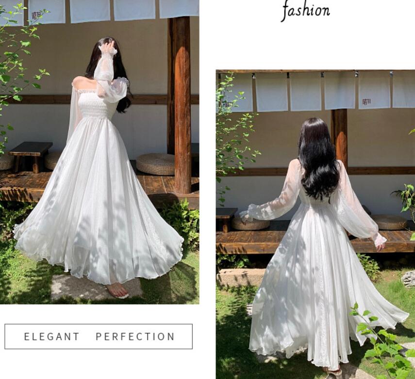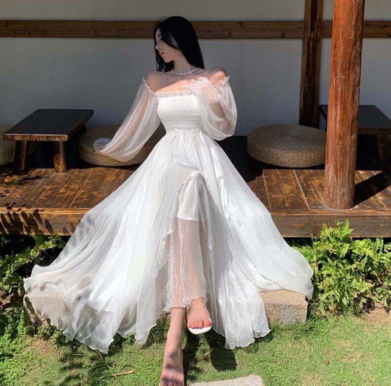 レディース 春夏定番 ビーチドレス ワンピース オフショルダー ストレッチ 海旅行 無地 チュール ビーチウェア ロング丈 エレフレアドレス カジュアル