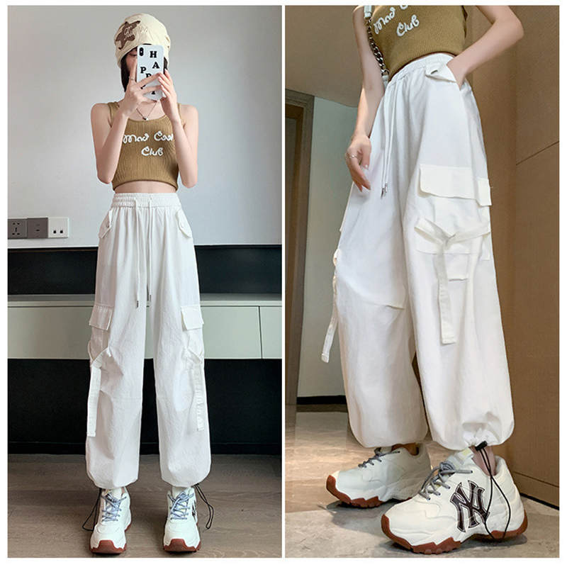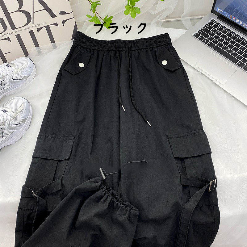 お取り寄せ商品 カーゴパンツ レディース 9COLORS S-XL 2WAY 裾口調整可能 長ズボン ワイドパンツ 九分丈 レトロデザイン 無地 ハイウエスト ストレートパンツ