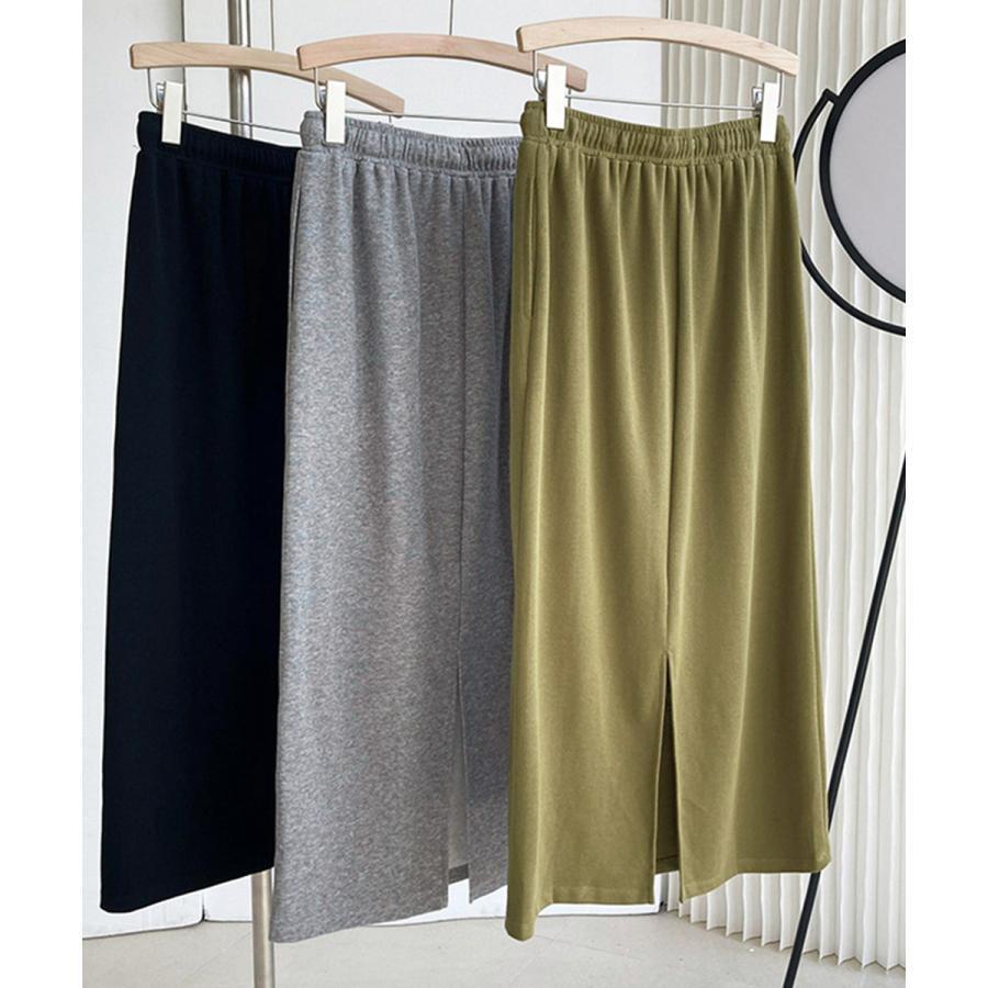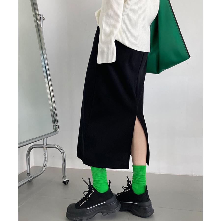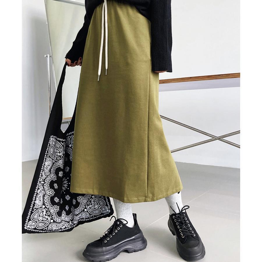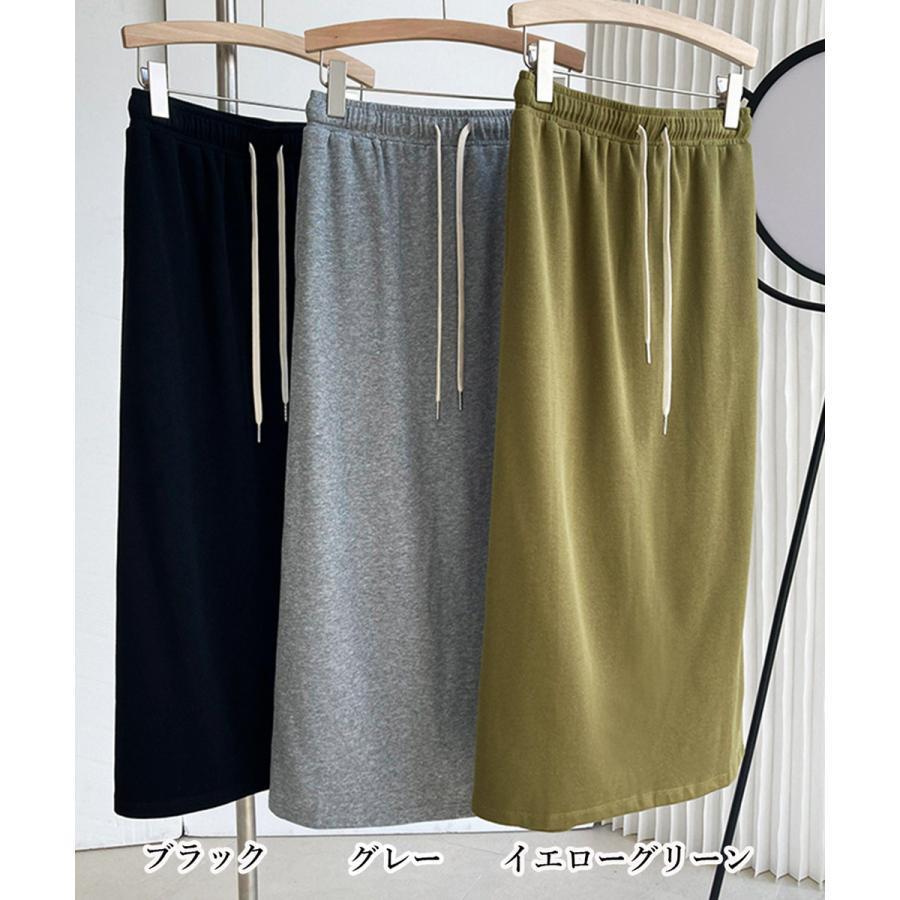 無地 ロングスカート バックスリット ミモレ丈スカート ウエストゴム 体型カバー ボトムス 着やせ