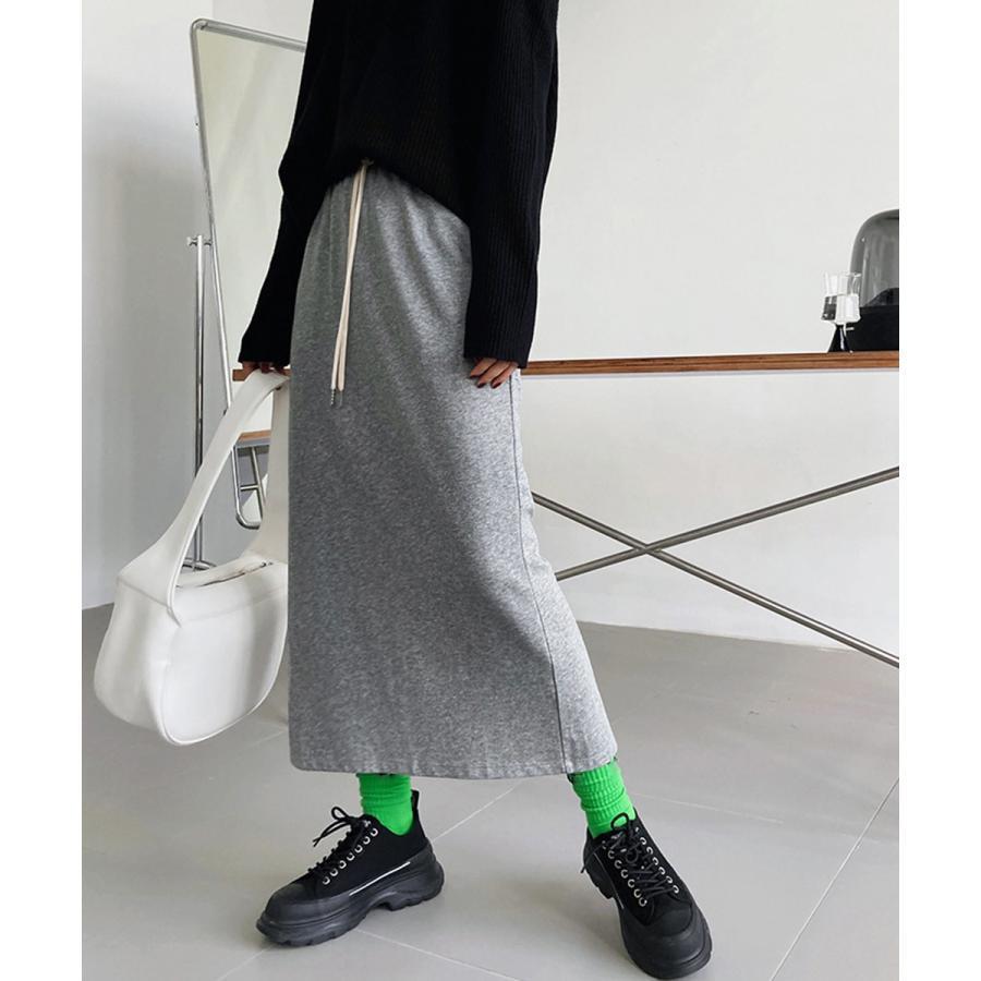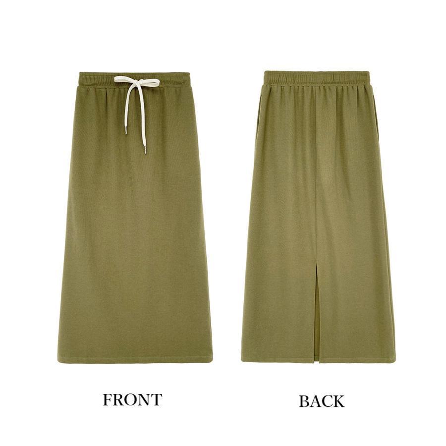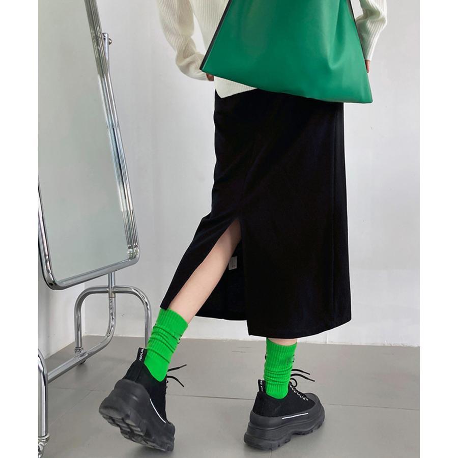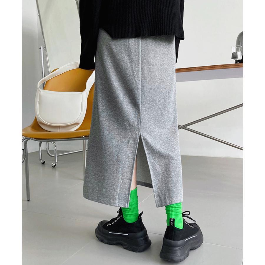 無地 ロングスカート バックスリット ミモレ丈スカート ウエストゴム 体型カバー ボトムス 着やせ