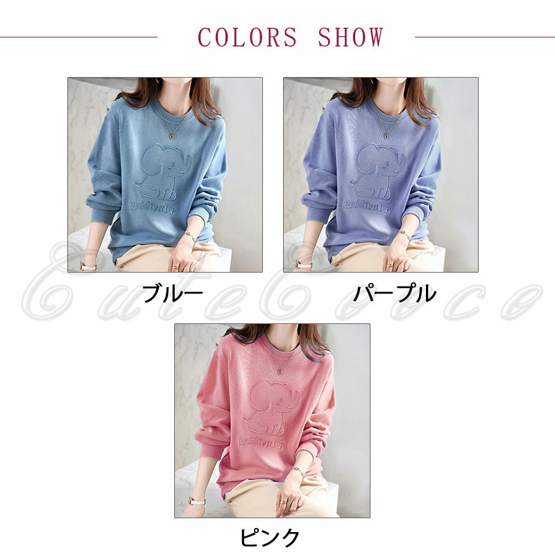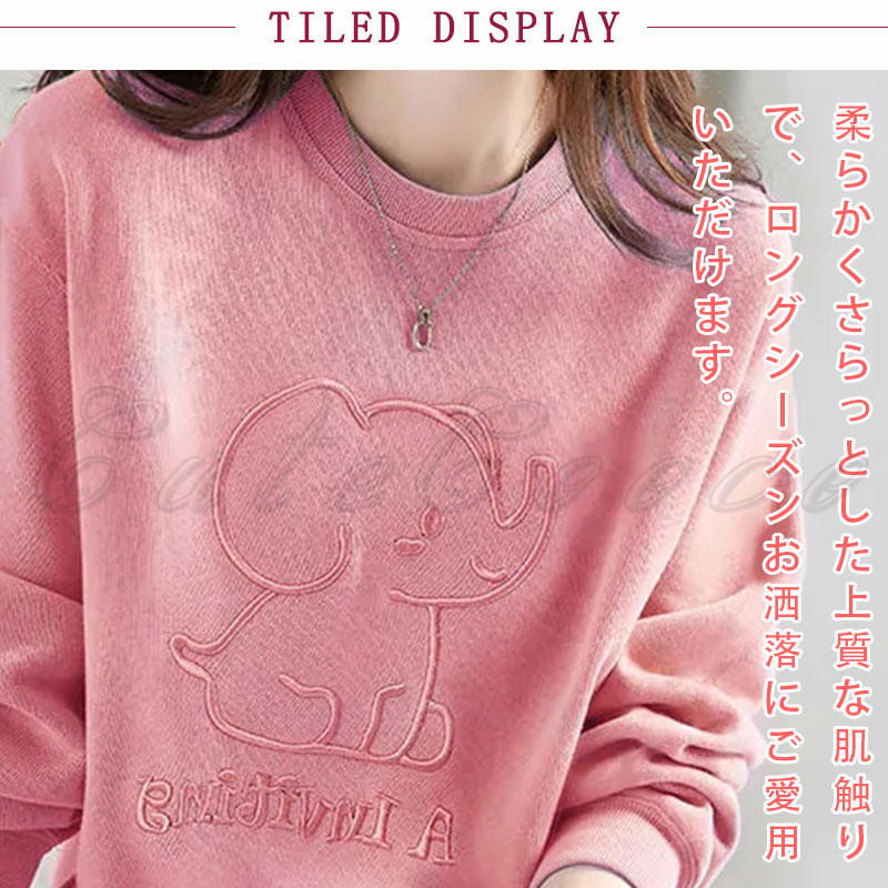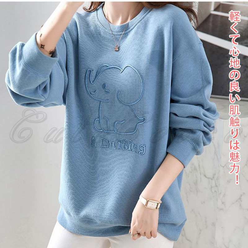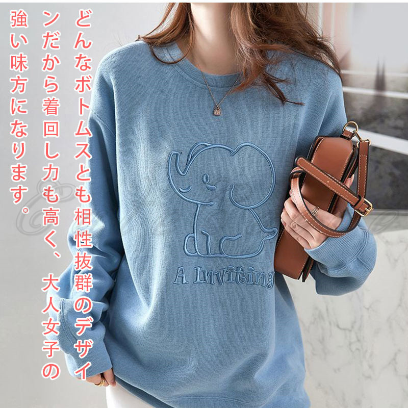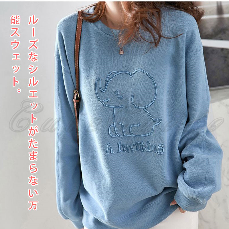 トレーナ レディース 象 スウェット トップス 長袖 デイおしゃれ 春 冬 プルオーバー カジュアル 可愛い 体型カバー 秋 送料無料 ドロップショルダー