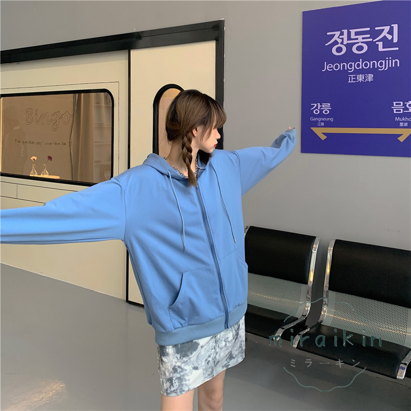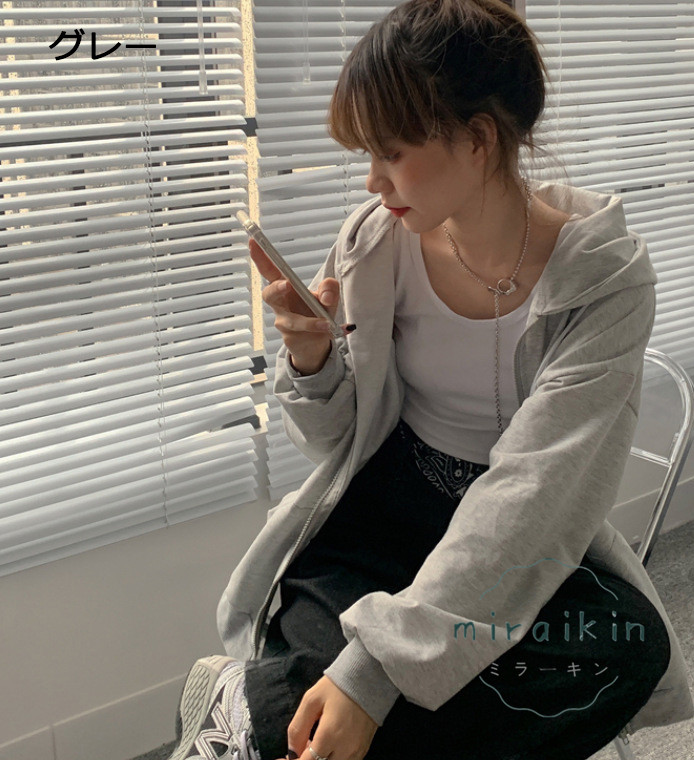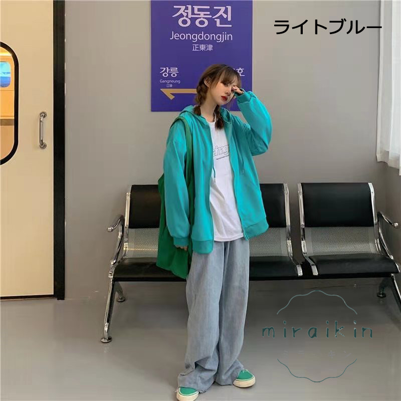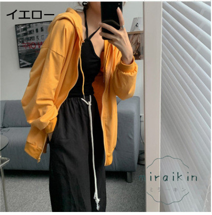 ジップパーカー レディース 長袖 ジップアップパーカー 無地 フード付きスウェット トップス ライトアウター 通勤通学 カジュアル おしゃれ ゆったり 送料無料