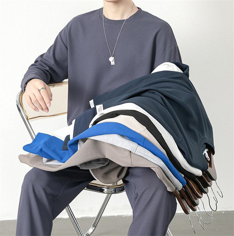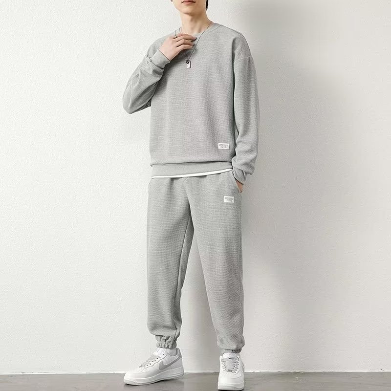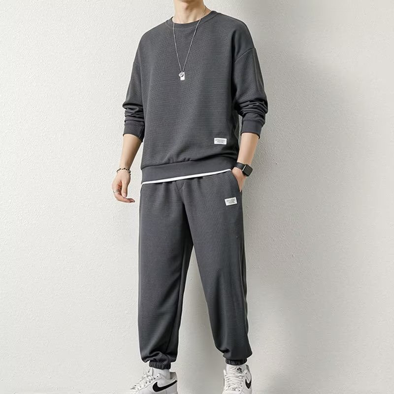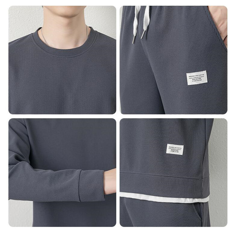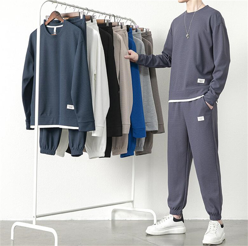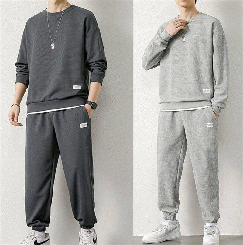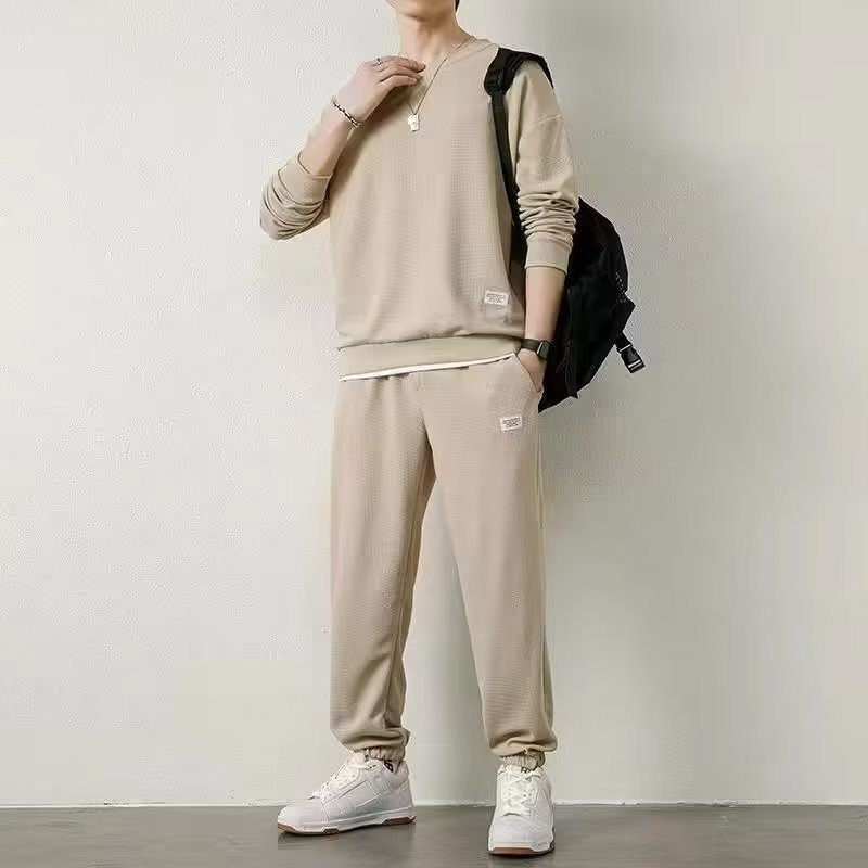 秋の長袖プルオーバーパーカーとロング丈スエットパンツのオシャレなセットアップジャージです。