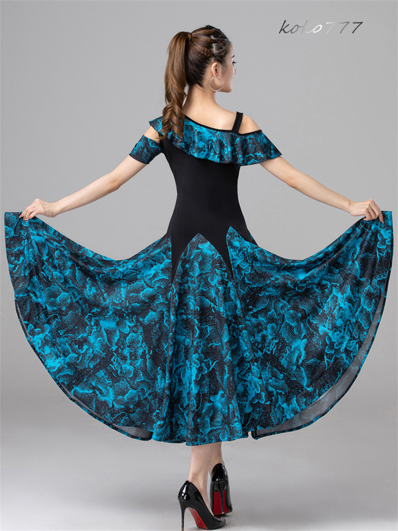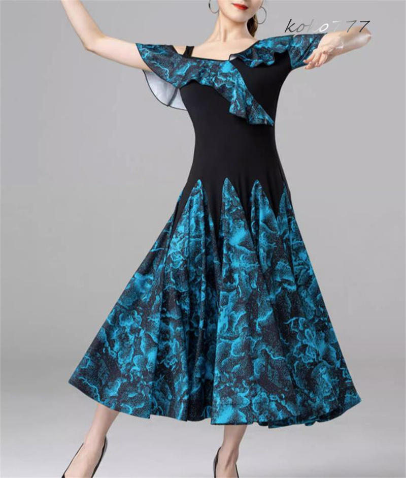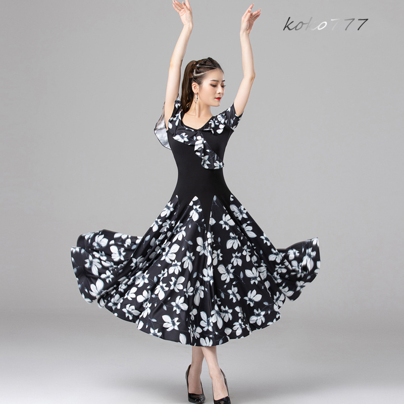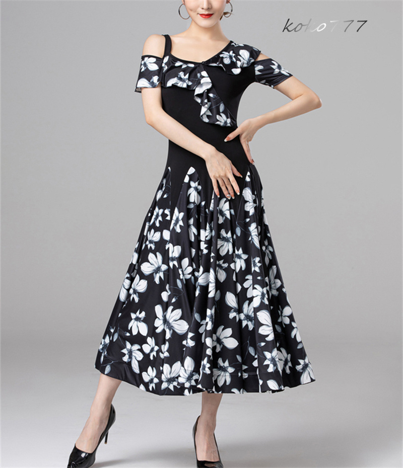 ロングドレス レディース ワンピース ラテンダンス 花柄 パーティー ナショナルダンス コスチューム 公演 モダンダンス 発表会 洋服 ワルツ 舞台衣装