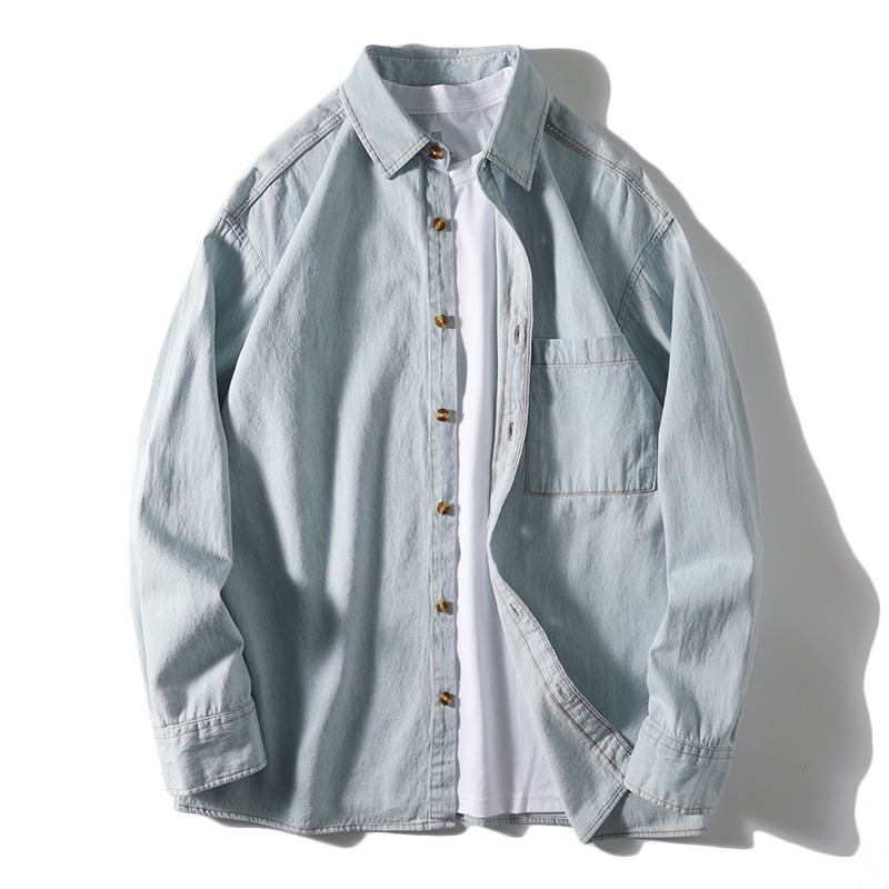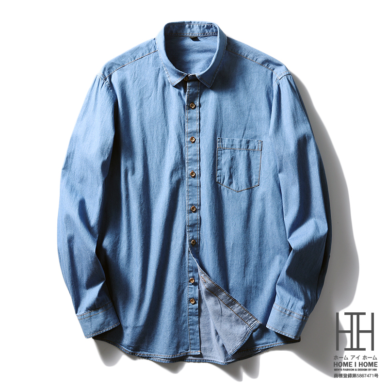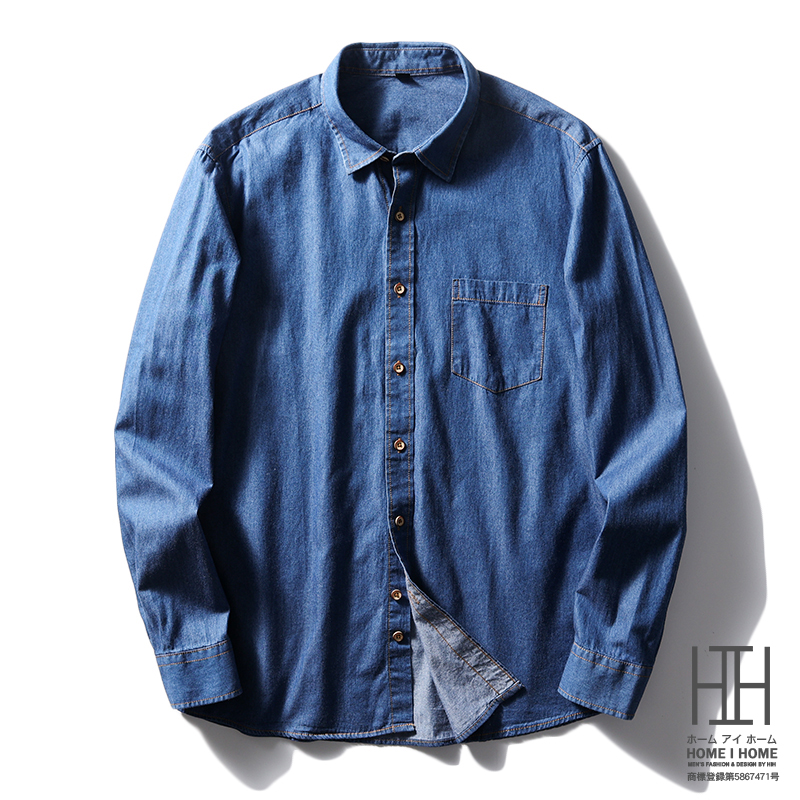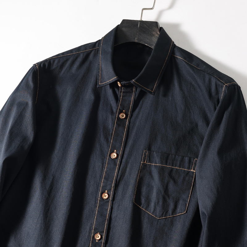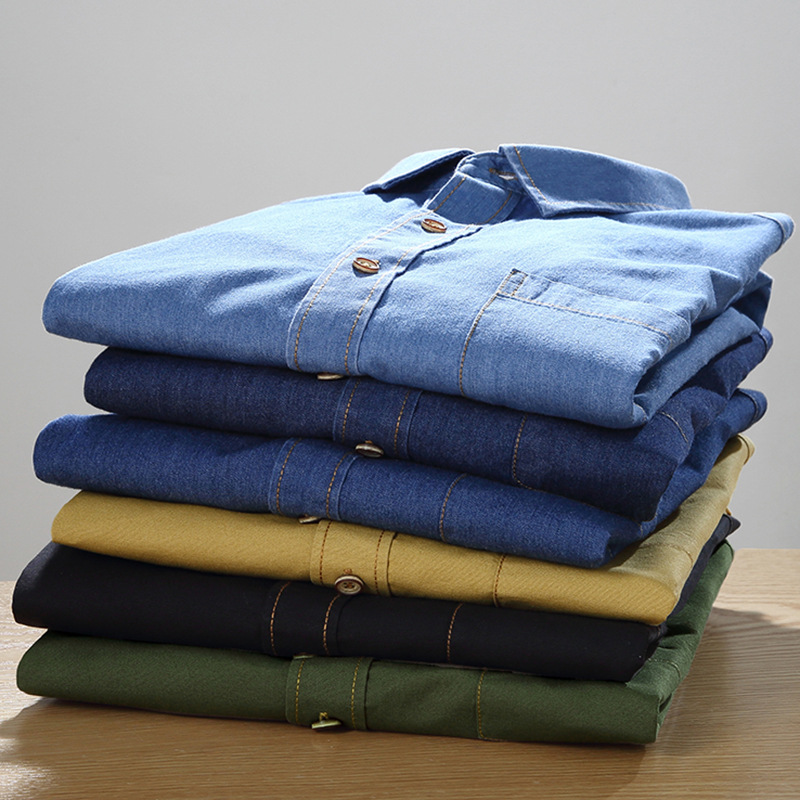 長袖シャツ メンズ デニムシャツ ダンガリー ポケット付き カジュアルシャツ ワークシャツ 水洗い加工 柔らかい 秋 ウォッシュ加工