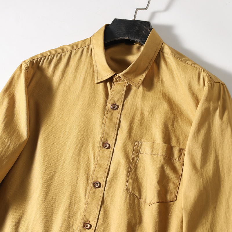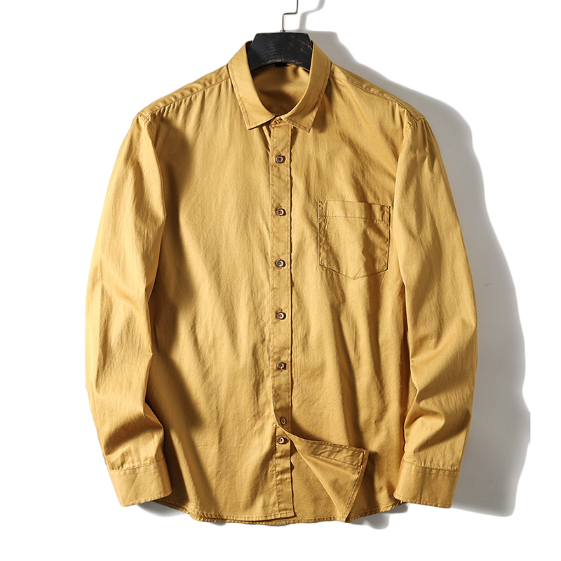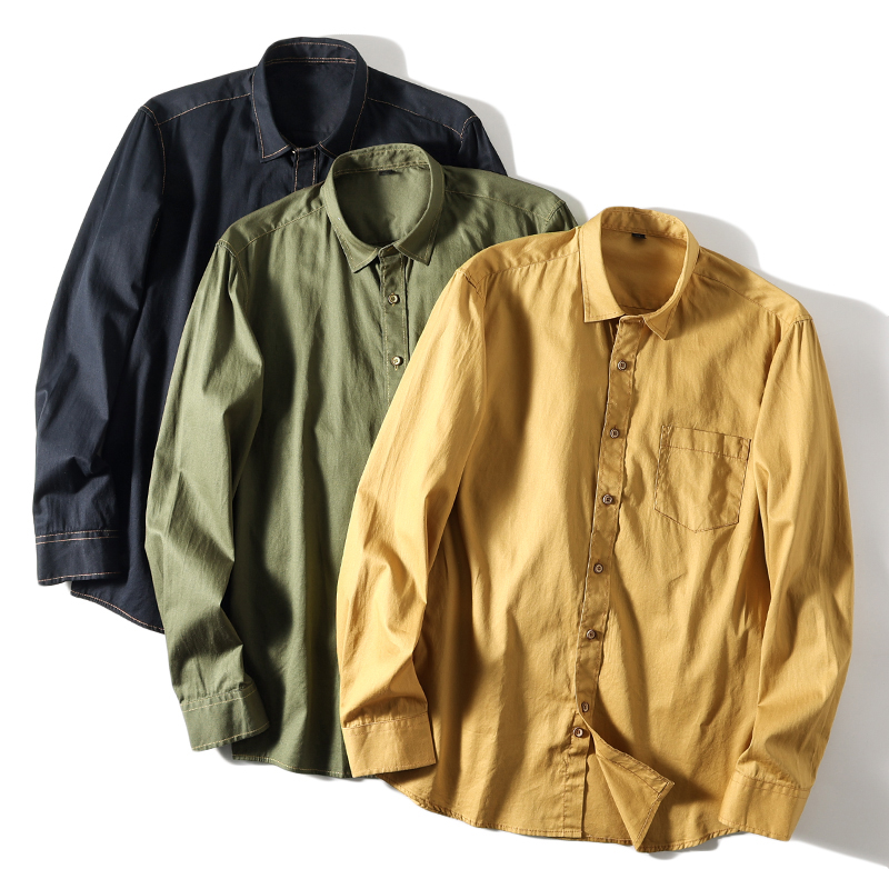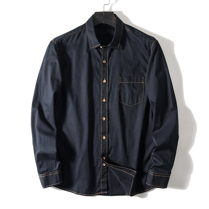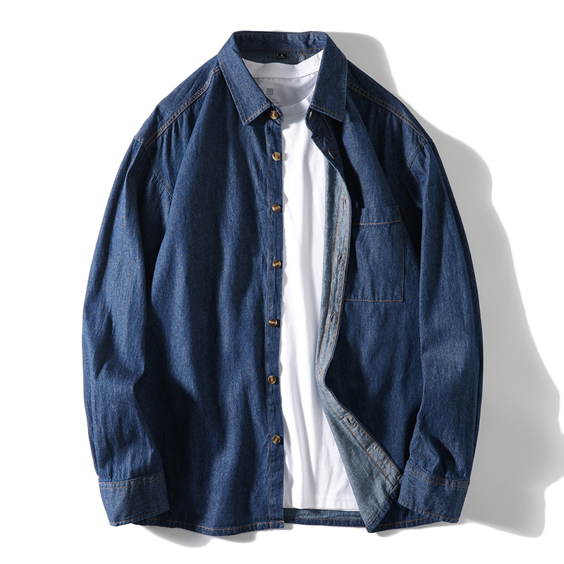 長袖シャツ メンズ デニムシャツ ダンガリー ポケット付き カジュアルシャツ ワークシャツ 水洗い加工 柔らかい 秋 ウォッシュ加工