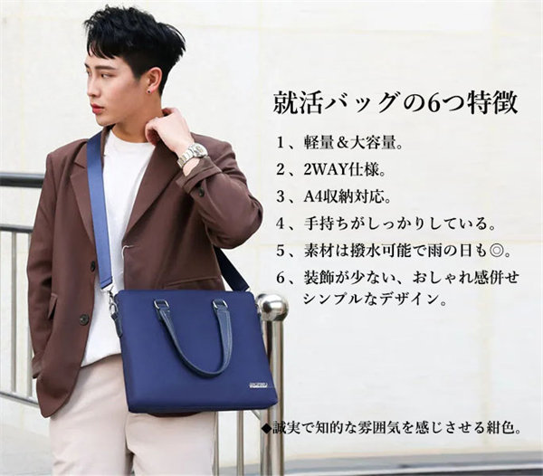 荷物が軽い時はブリーフケースとして、荷物が多くて重いときは肩掛けにするという使い方ができます。