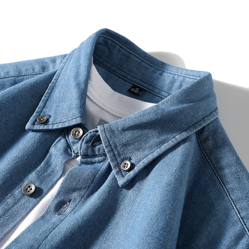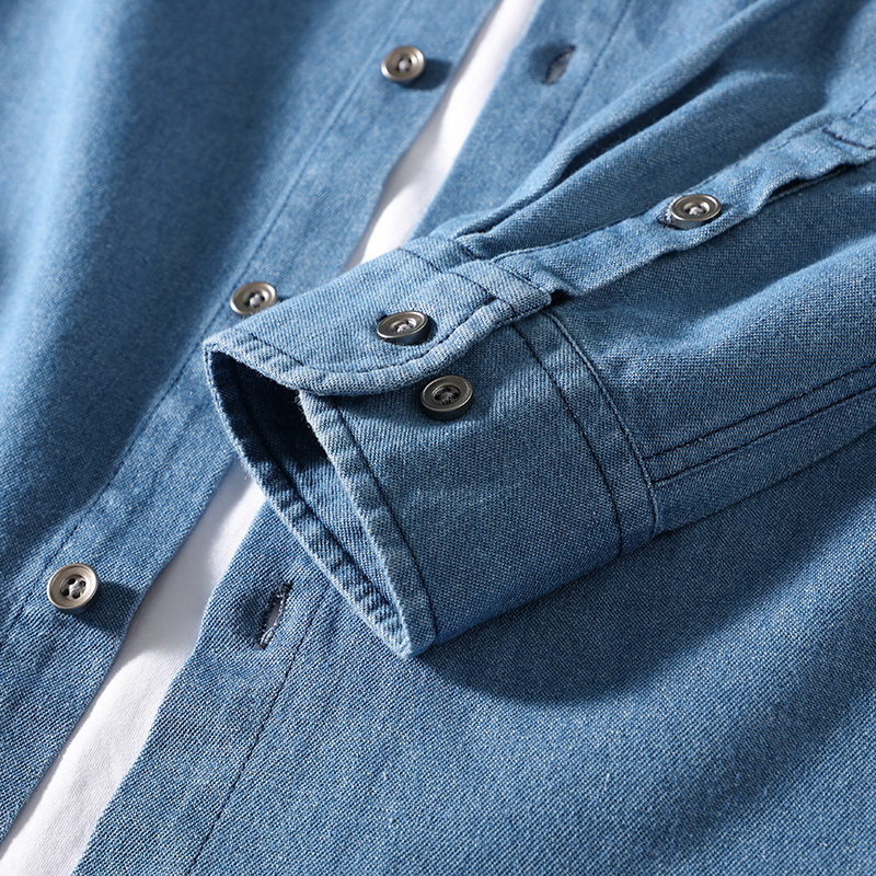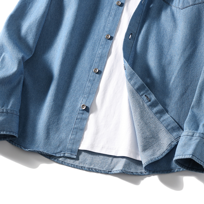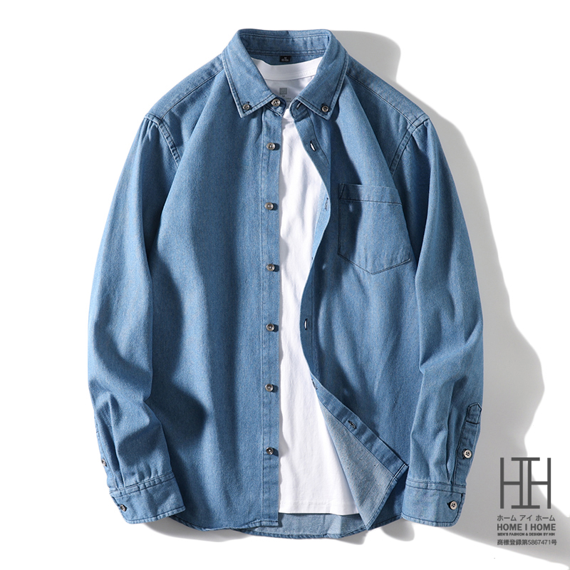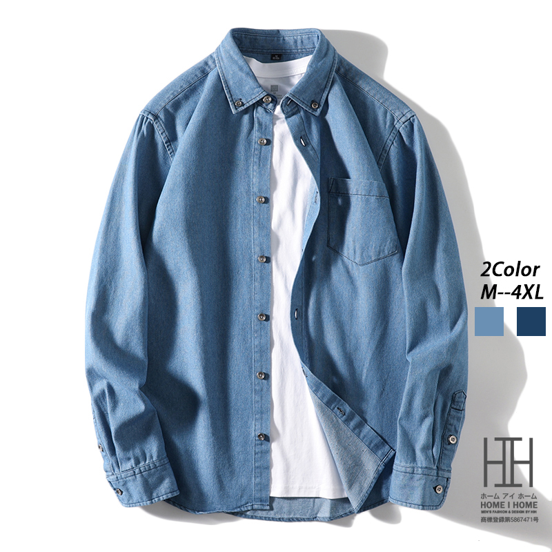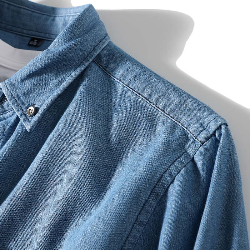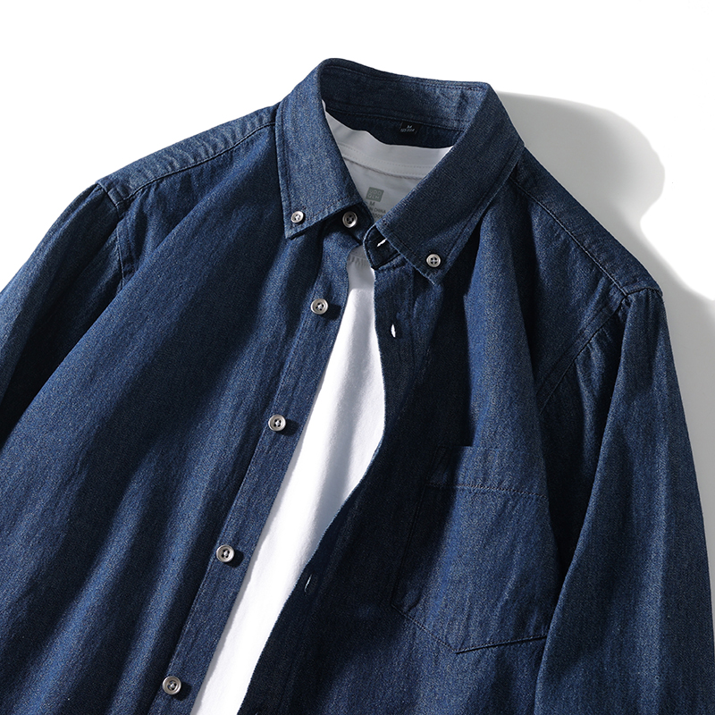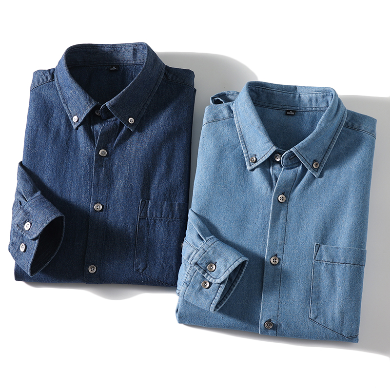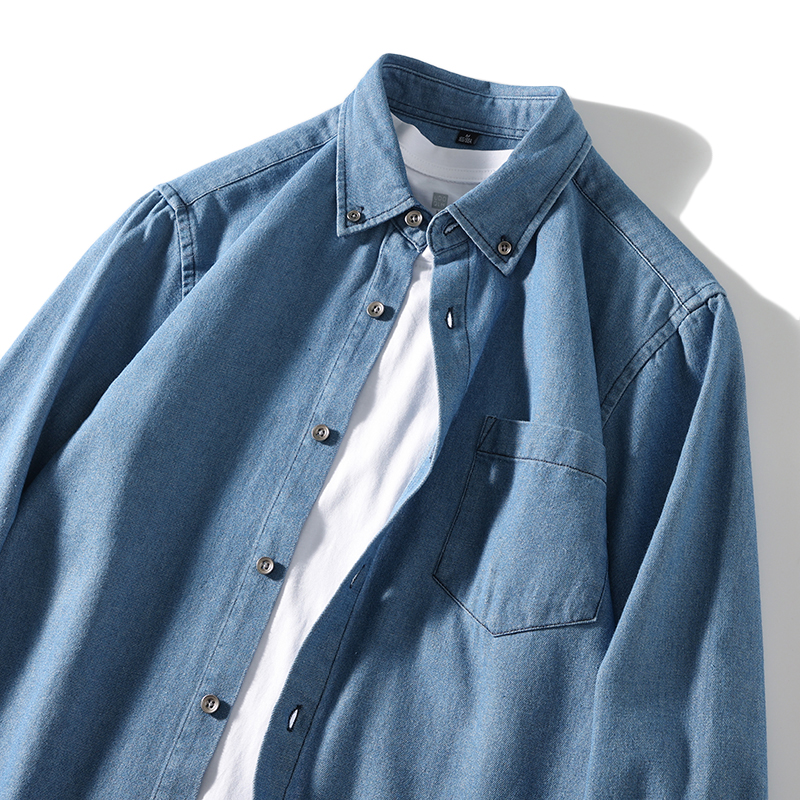 ボタンダウンシャツ デニムシャツ メンズ 長袖 ポケット付き ウォッシュ加工 ワークシャツ 作業 カジュアル 柔らかい 羽織り