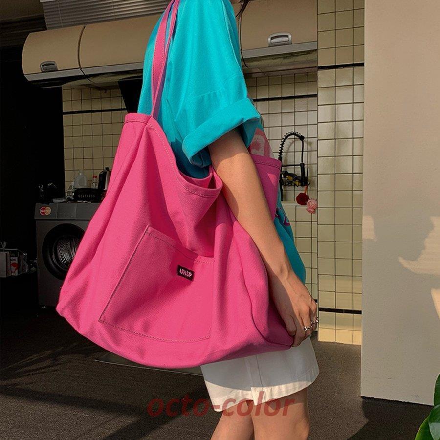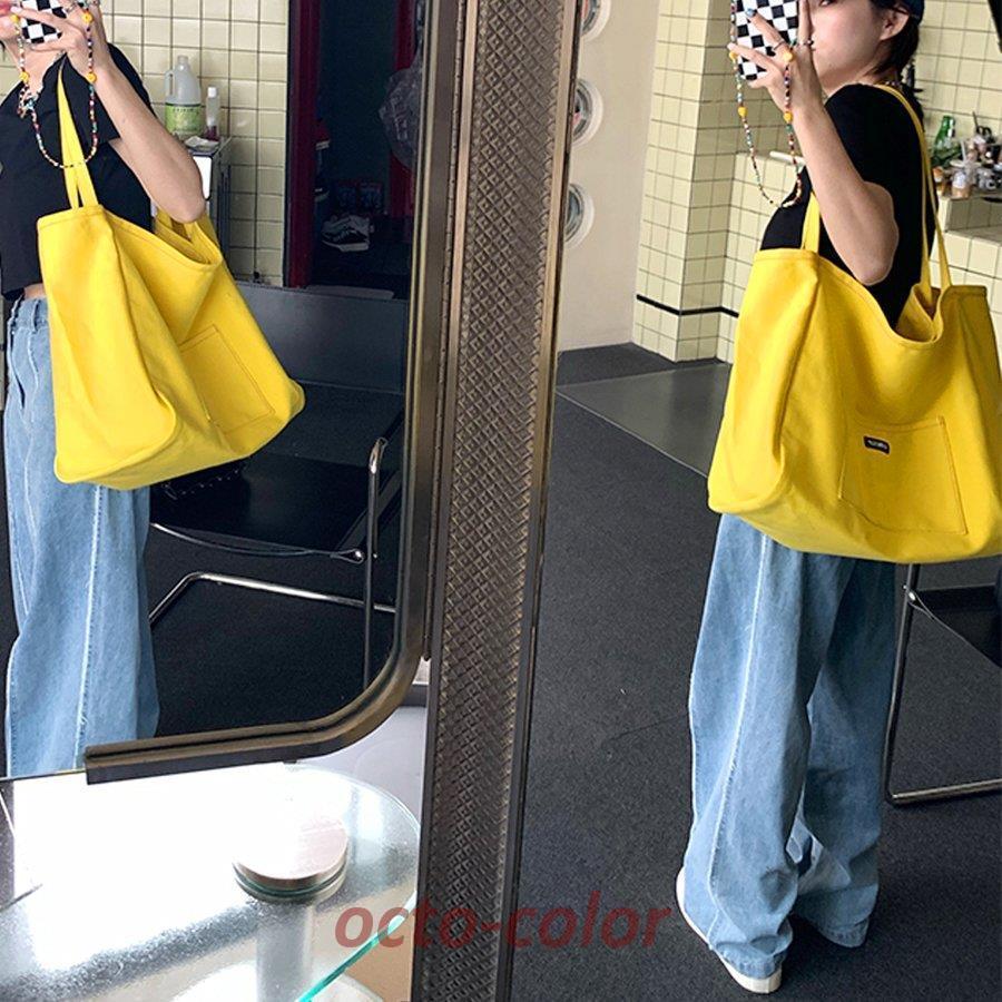 大収納 底板付き 肩掛けカバン レディース 学生 シンプル 無地 男女兼用 韓国 カジュアル 大きめ エコバッグ おしゃれ