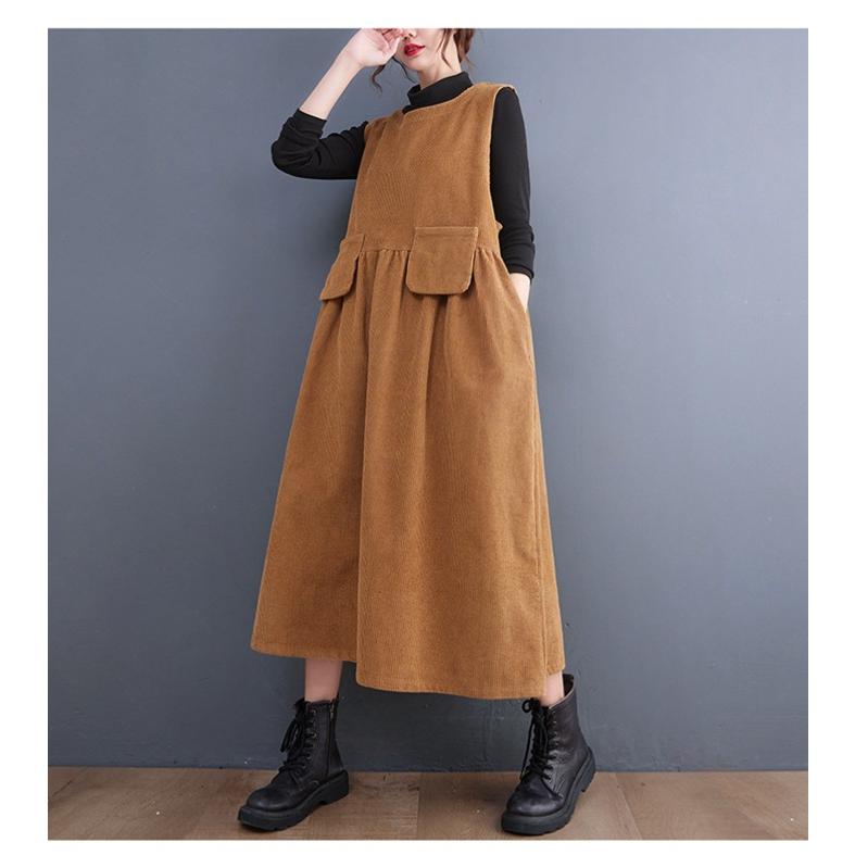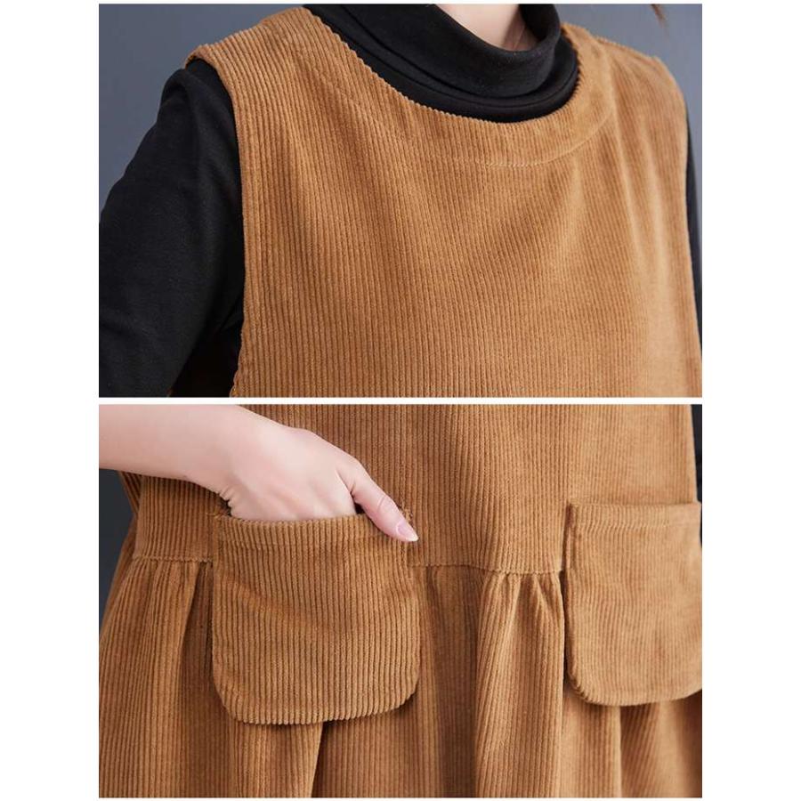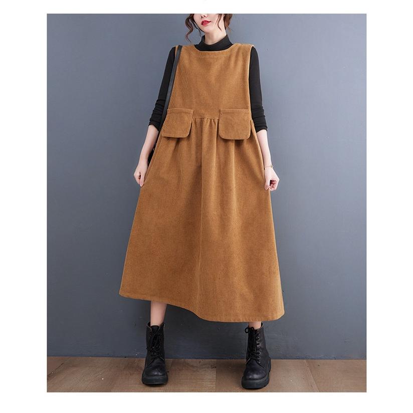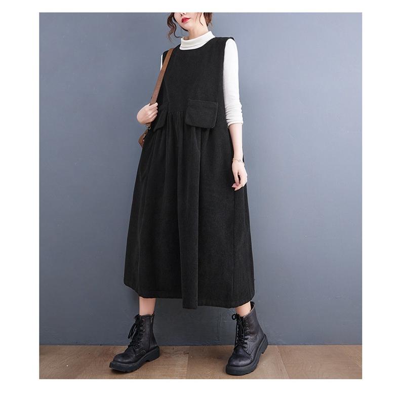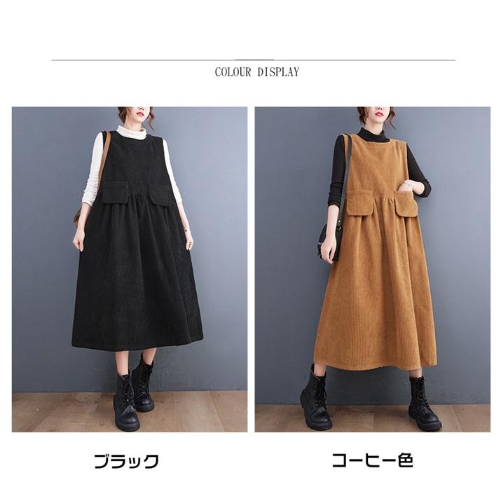 ワンピース ロングワンピース レディース ジャンパースカート 無地 ノースリーブ コーデュロイ コール天 マキシ丈 ロング 体型カバー ゆったり 秋 冬 ファッション