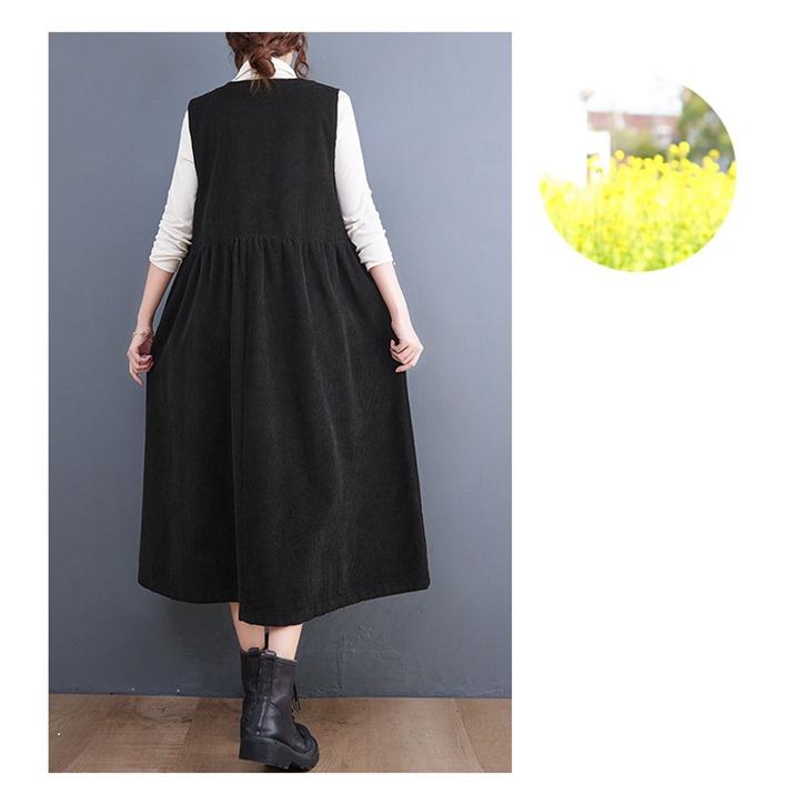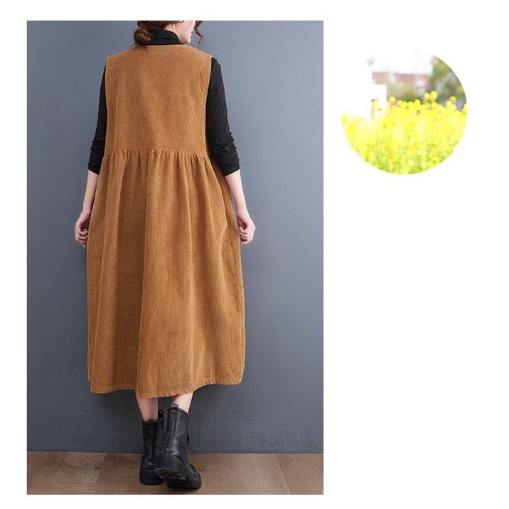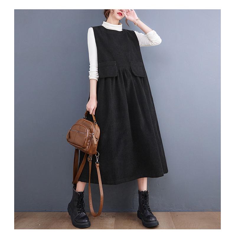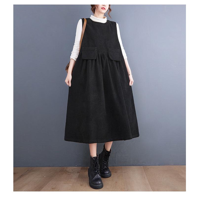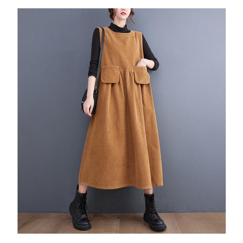 ワンピース ロングワンピース レディース ジャンパースカート 無地 ノースリーブ コーデュロイ コール天 マキシ丈 ロング 体型カバー ゆったり 秋 冬 ファッション