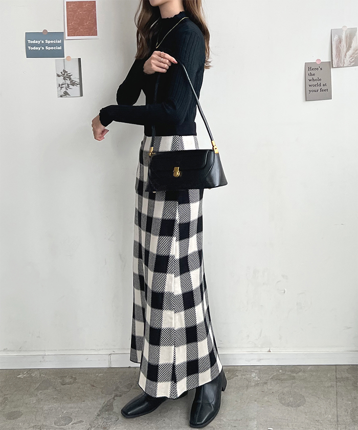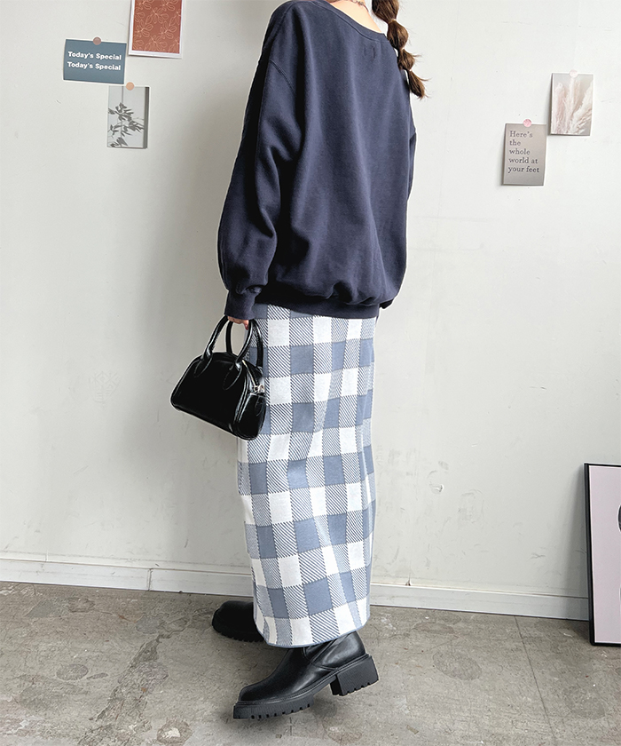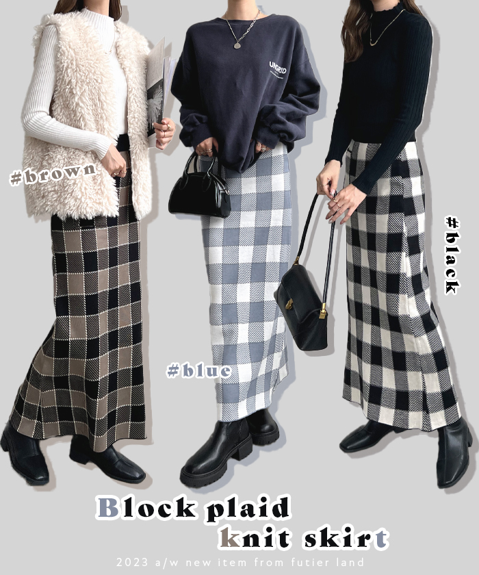 秋冬らしいブロックチェックのスカートが新登場しました。もちっとやわらかなニットで肌当たりチクチクしないのでストレスフリーな着心地。今っぽいロング丈でスウェットなどのカジュアルアイテムとの相性も抜群です^^またポケットの位置は前でも後ろでも仕様可◎プライベートから自宅でのリラックスタイムにもおすすめのアイテムです。