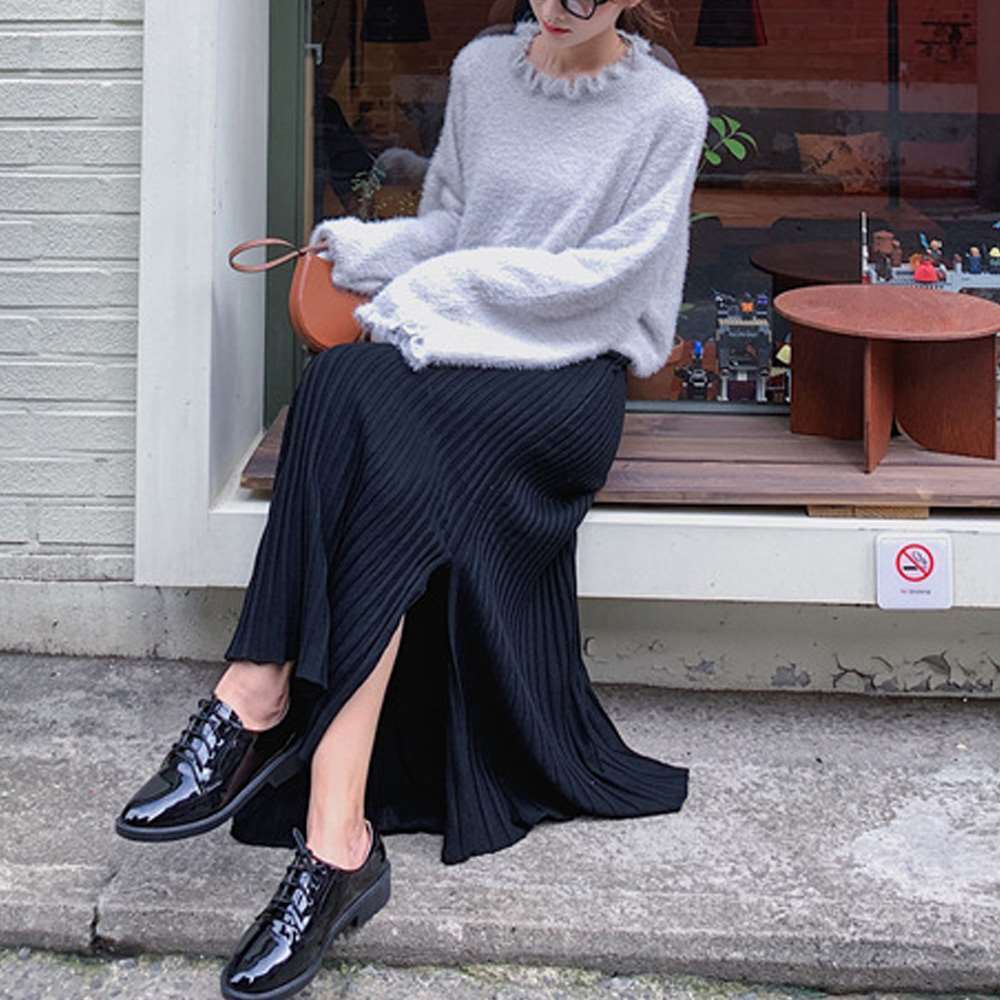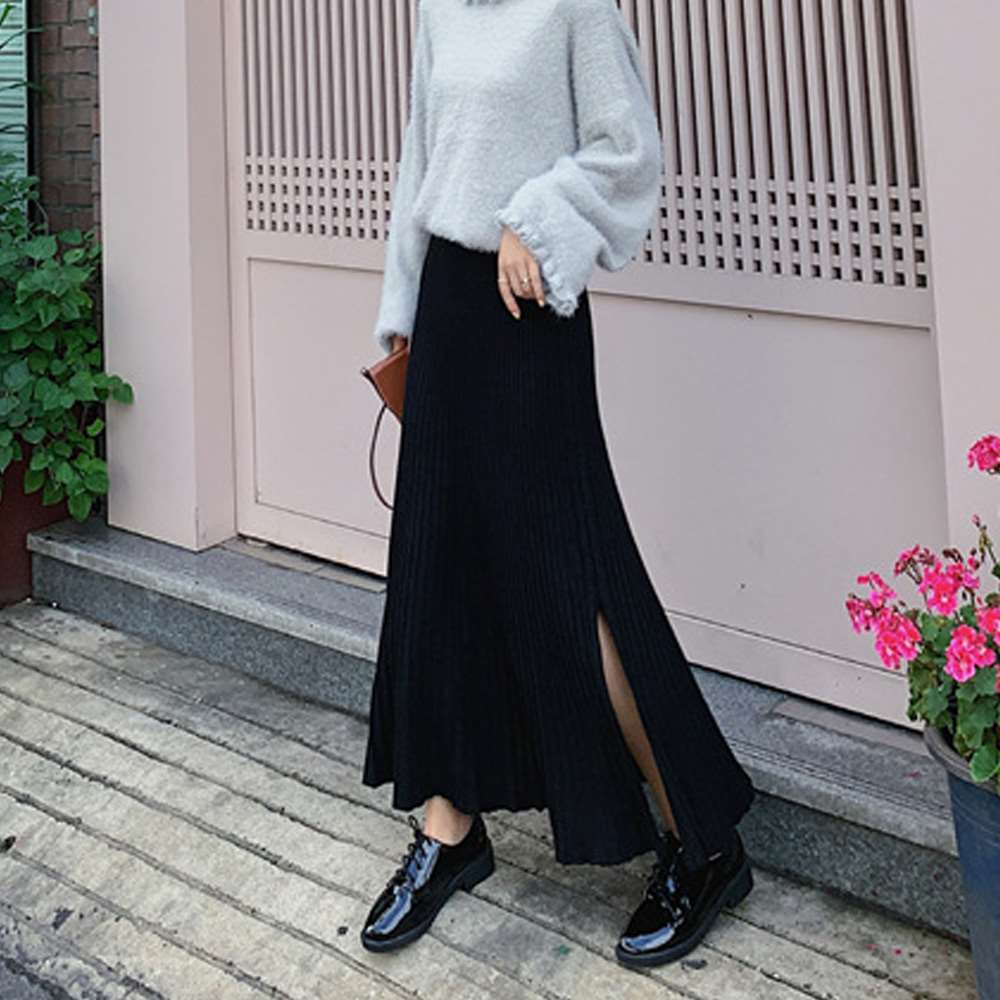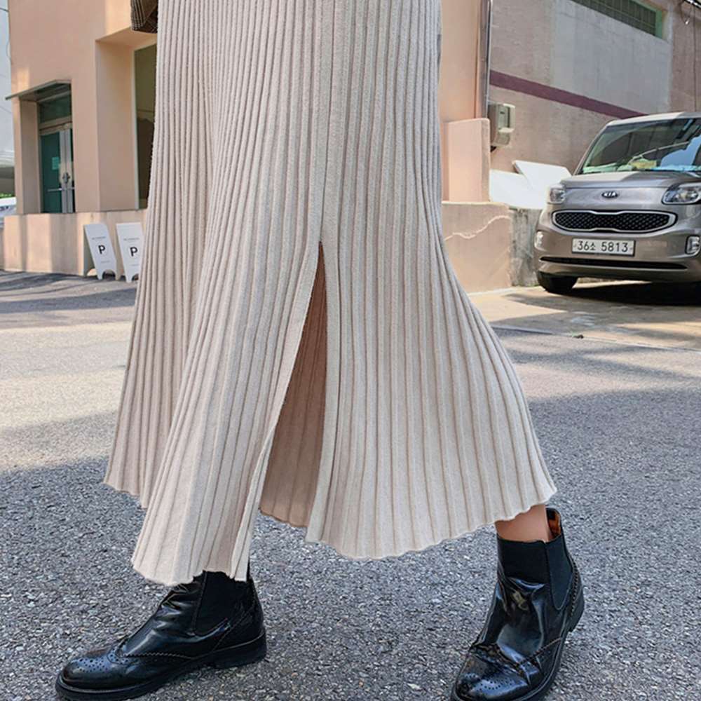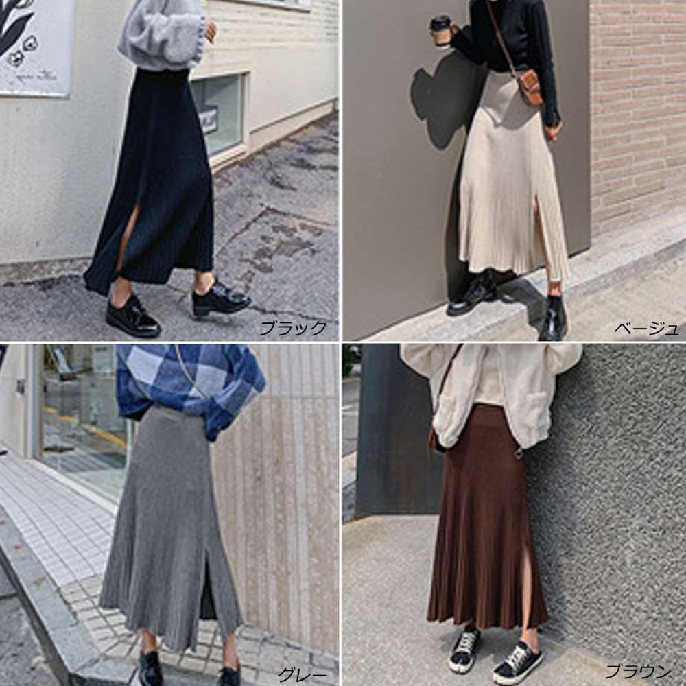 ニット スカート レディース ハイウエスト フスリット Aライン プ