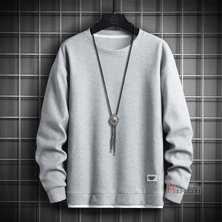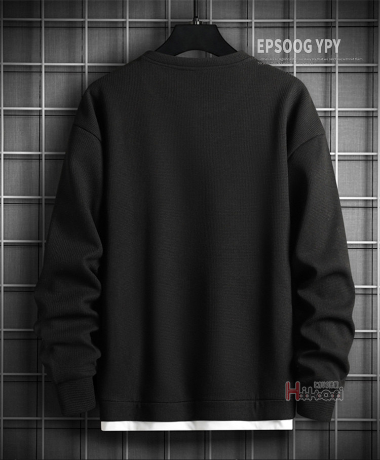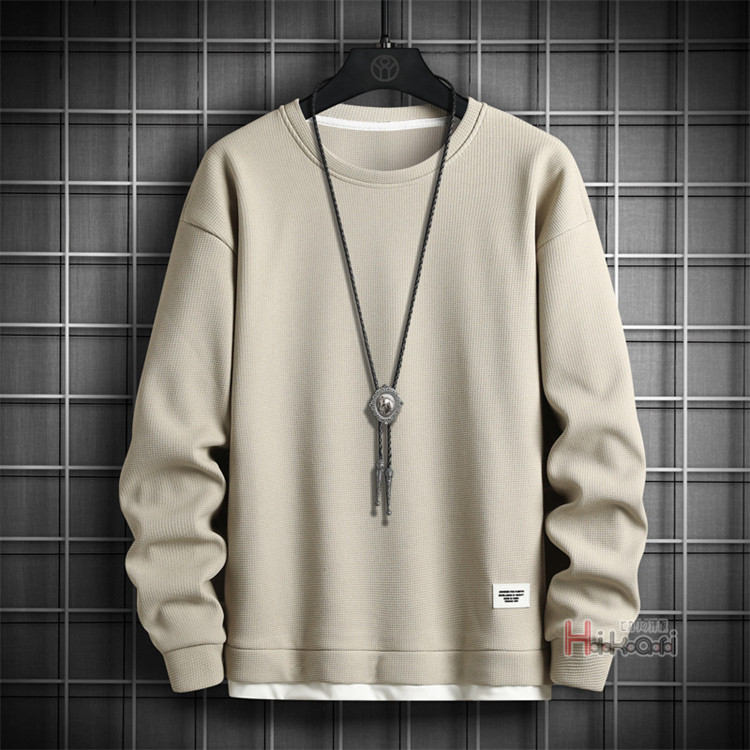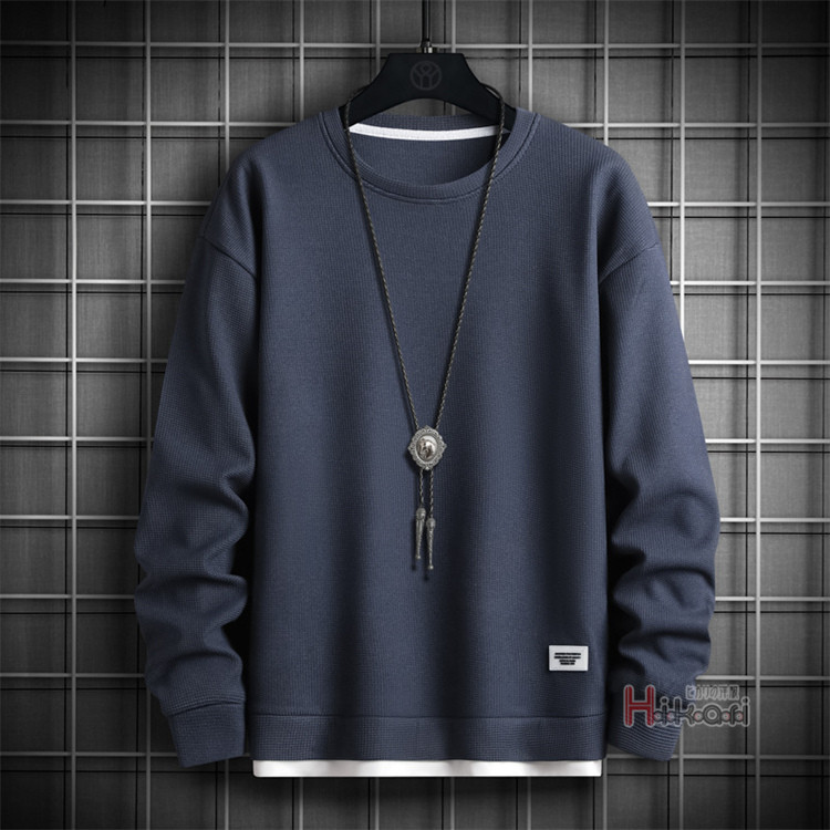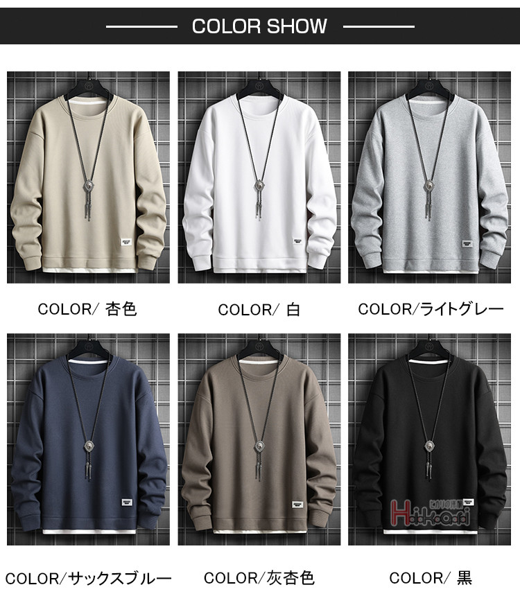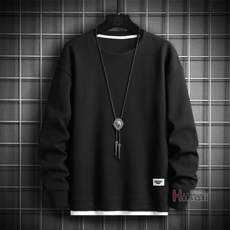 トレーナー メンズ 無地 ワッフル編み スウェットトレーナー 長袖 重ね着風 白 黒 杏色 スウェット おしゃれ プルオーバー スエット