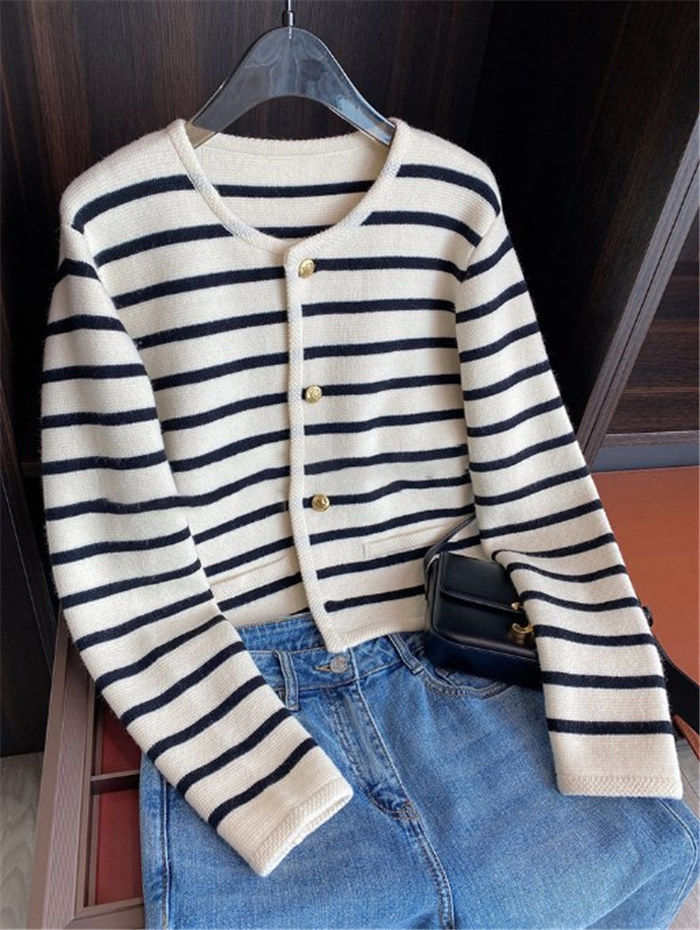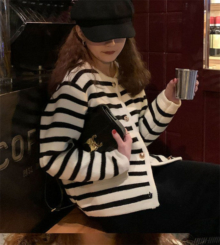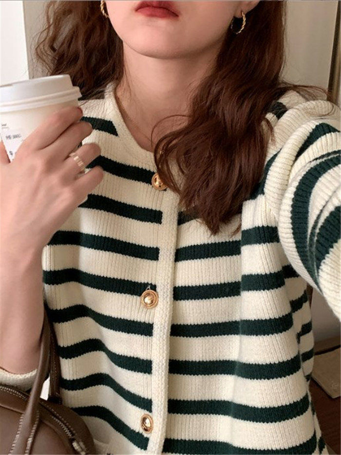 セーター レディース ニットカーディガン 秋 冬 ストライ