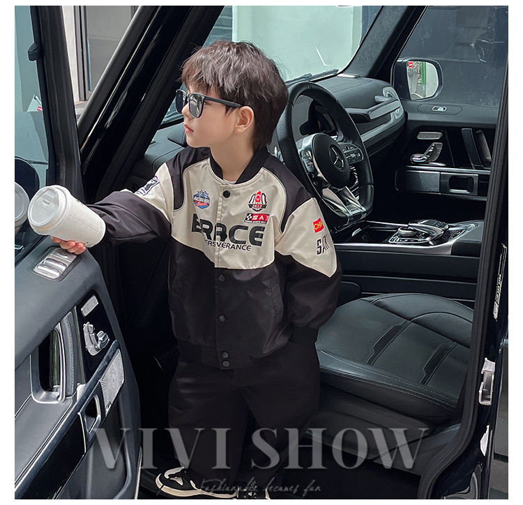 キッズ アウター 長袖 トップス シンプル カジュアル 動きやすい あわせやすい ジャンパー おしゃれ ゆったり ポケット 着やすい レーサー風