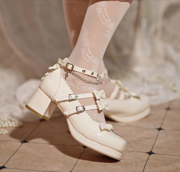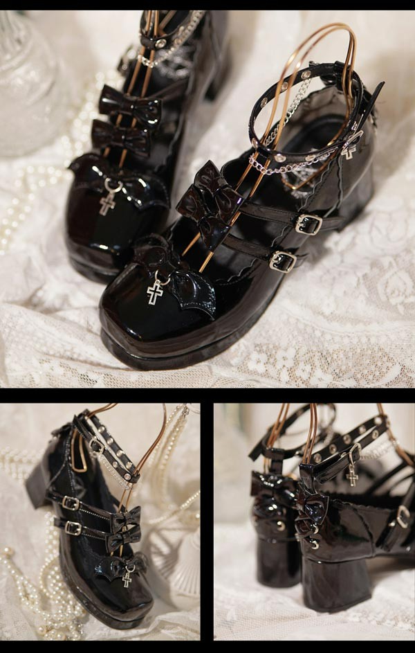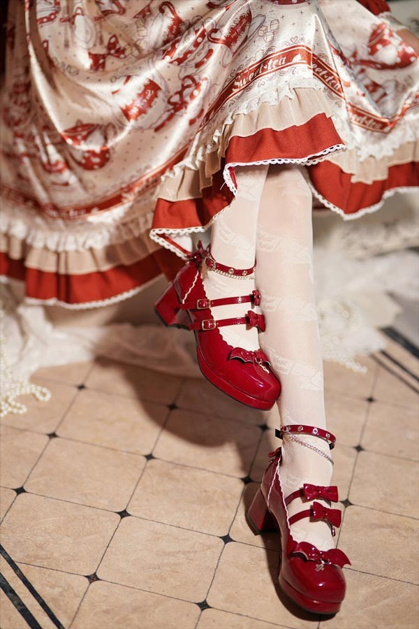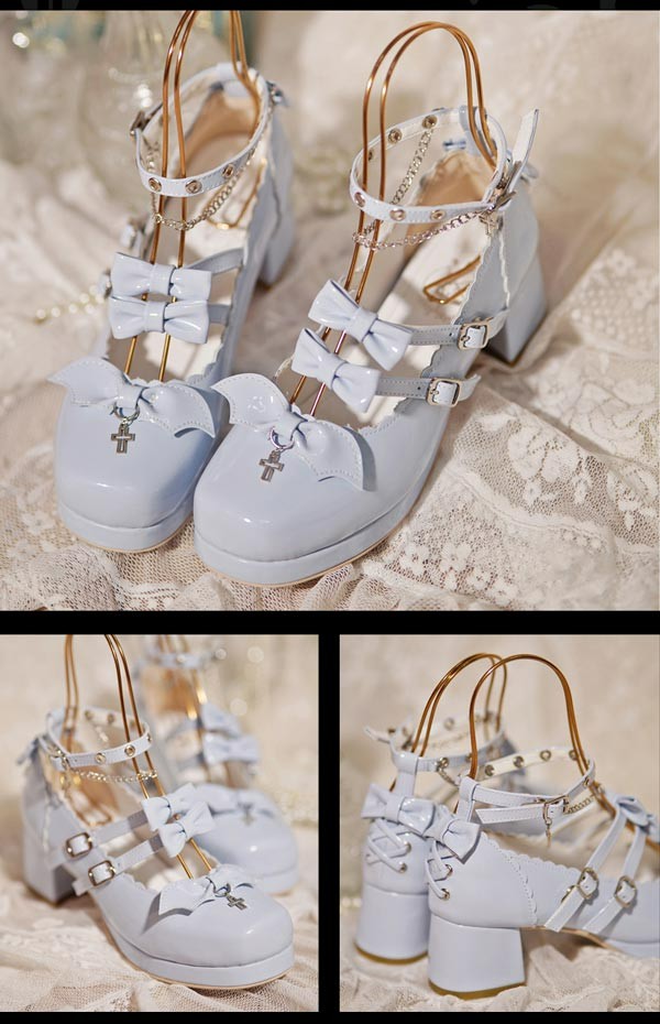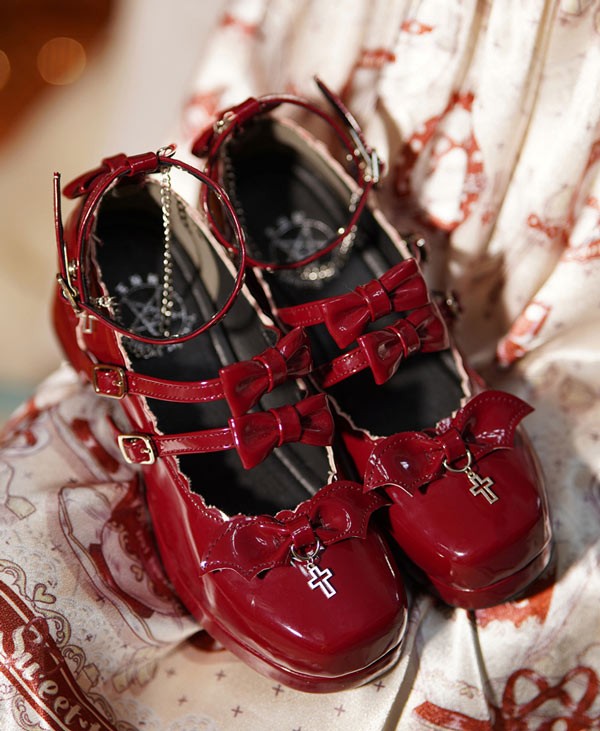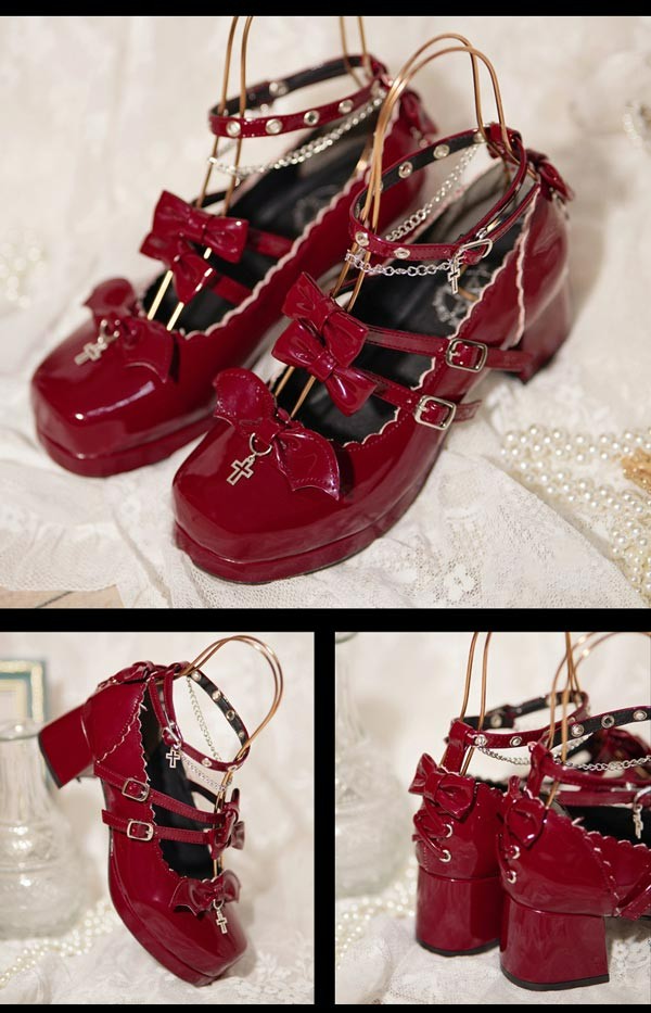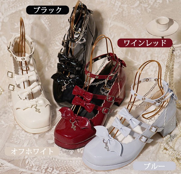 パンプス ハロウィン ロリータ ヒール5CM 太いヒール リボン 小悪魔 デビル チェーン 柔らかい チャンキーヒール スクエアトゥ ストラップ アンクルストラップ レディース かわいい レトロ オシャレ ワインレッド ブルー ホワイト米 ブラック コスプレ パーティー シューズ 靴 イベント 演出 司会 お出かけ 大きいサイズ 22.0?25.0