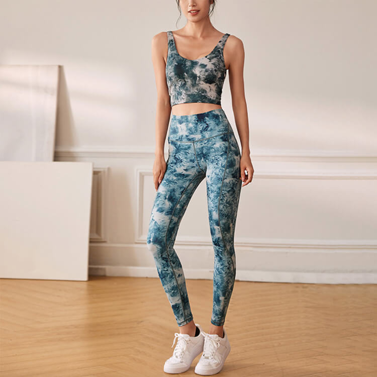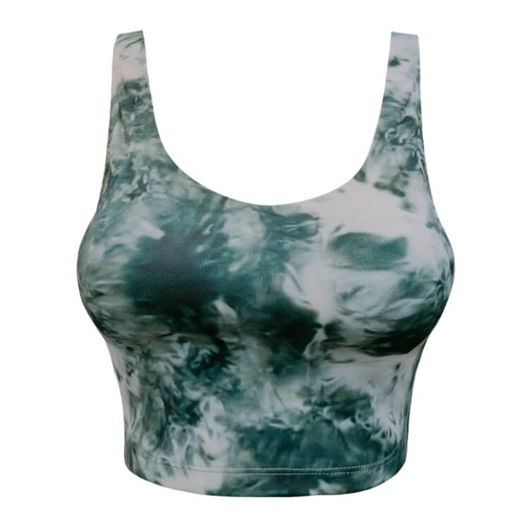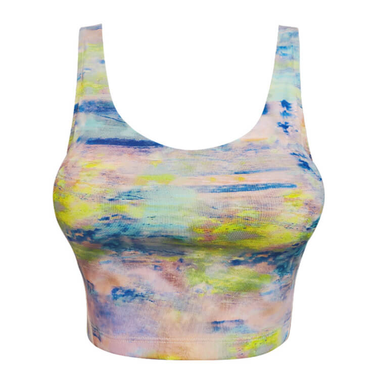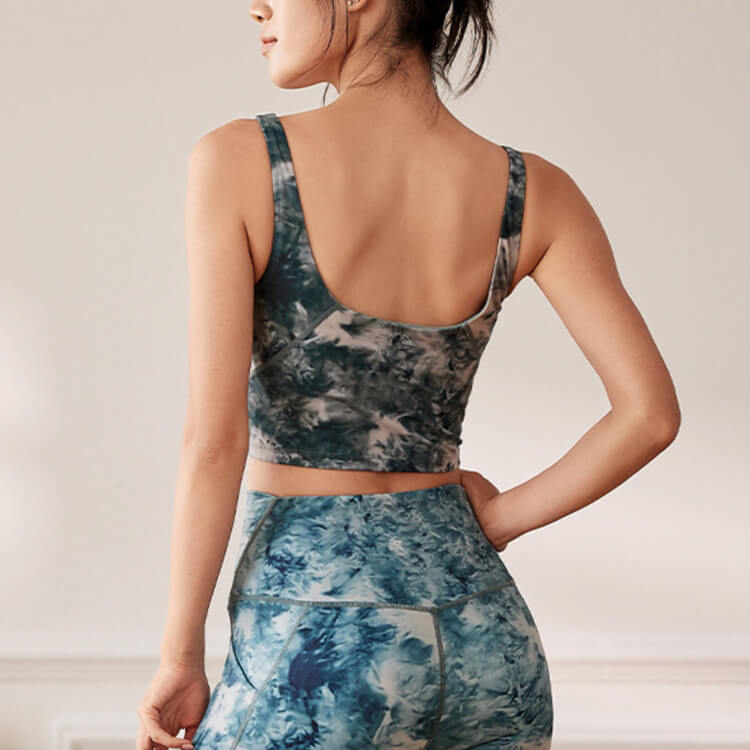 ホットヨガにおすすめ!インクアート風プリント柄ショート丈スポーツタンクトップ。