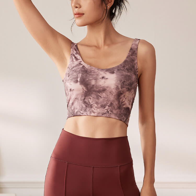 ヨガウェア タンクトップ ホットヨガ ブラ スポーツブラ 柄 インナー フィットネス Uネック 長め 体系カバー おしゃれ ノースリーブ トップス