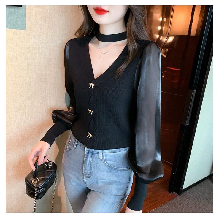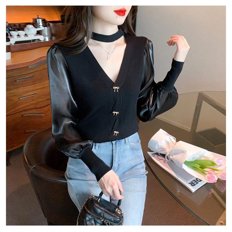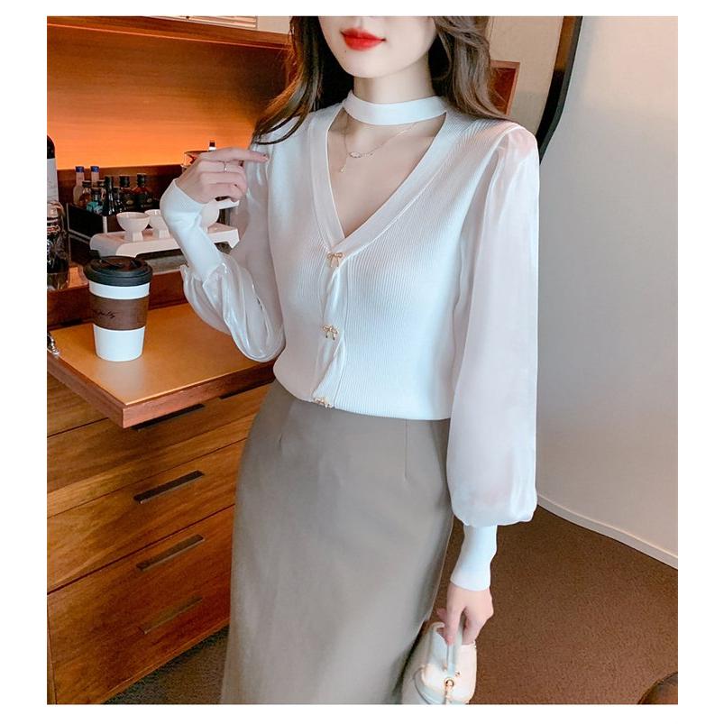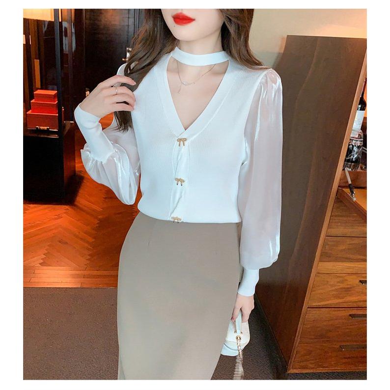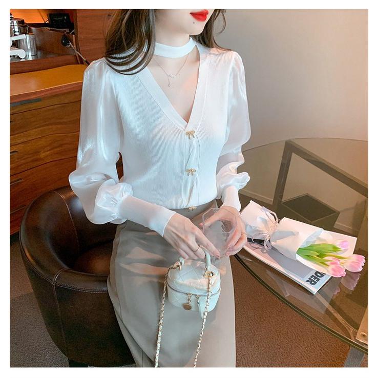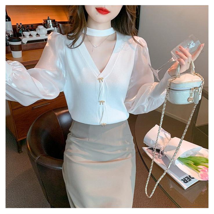 長袖シャツ ブラウス ニット トップス レディース Vネック 長袖 シンプル キレイめ 上品 大人 カジュアル 2タイプ 秋服