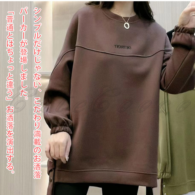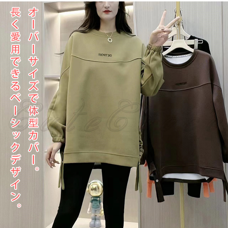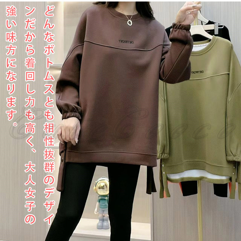 トレーナ ロゴ レディース トップス スウェット 長袖 ロング丈 ルーズフィット 後ろプリント カジュアル アルファベット 送料無料 秋 冬 デイ春
