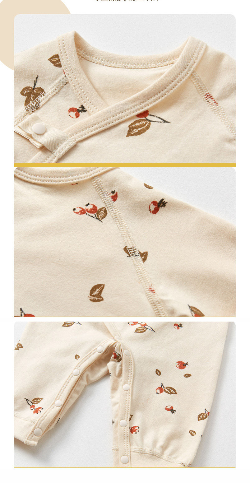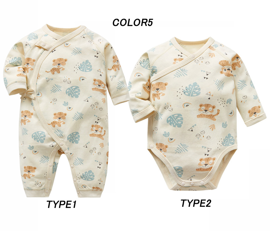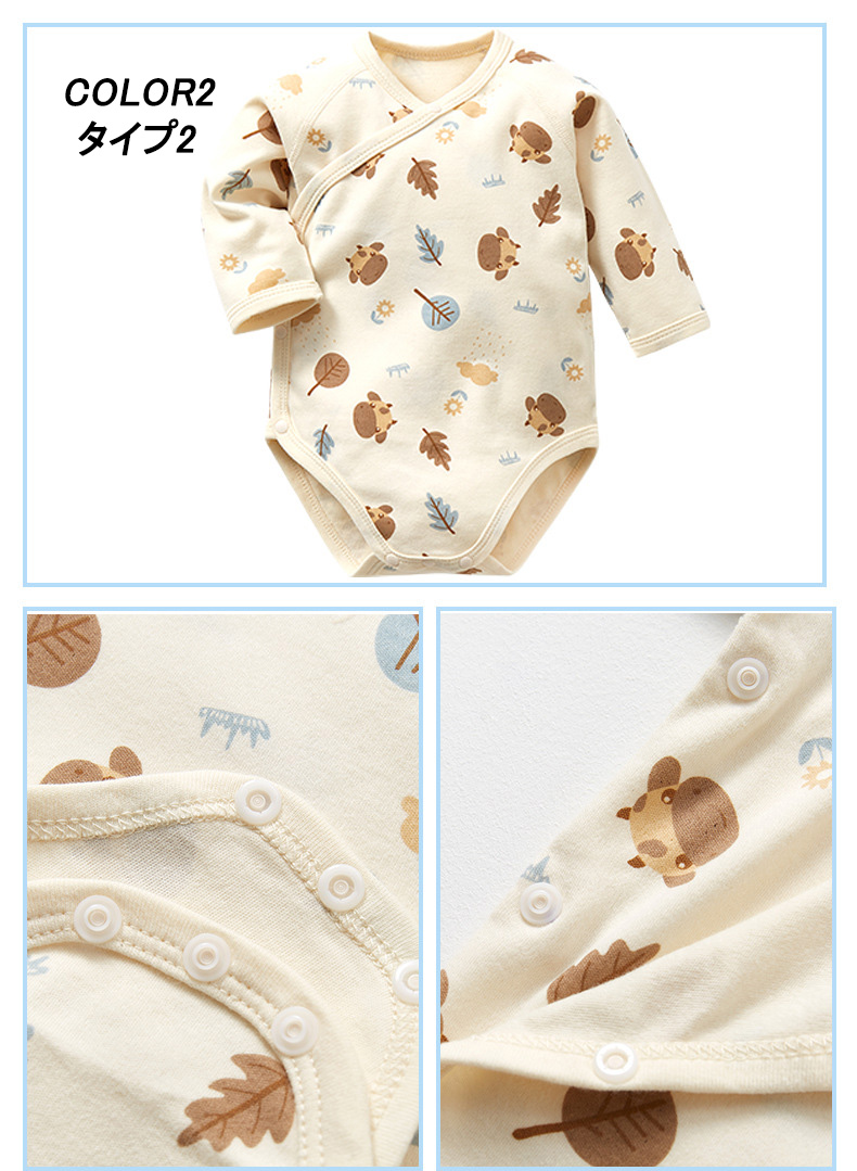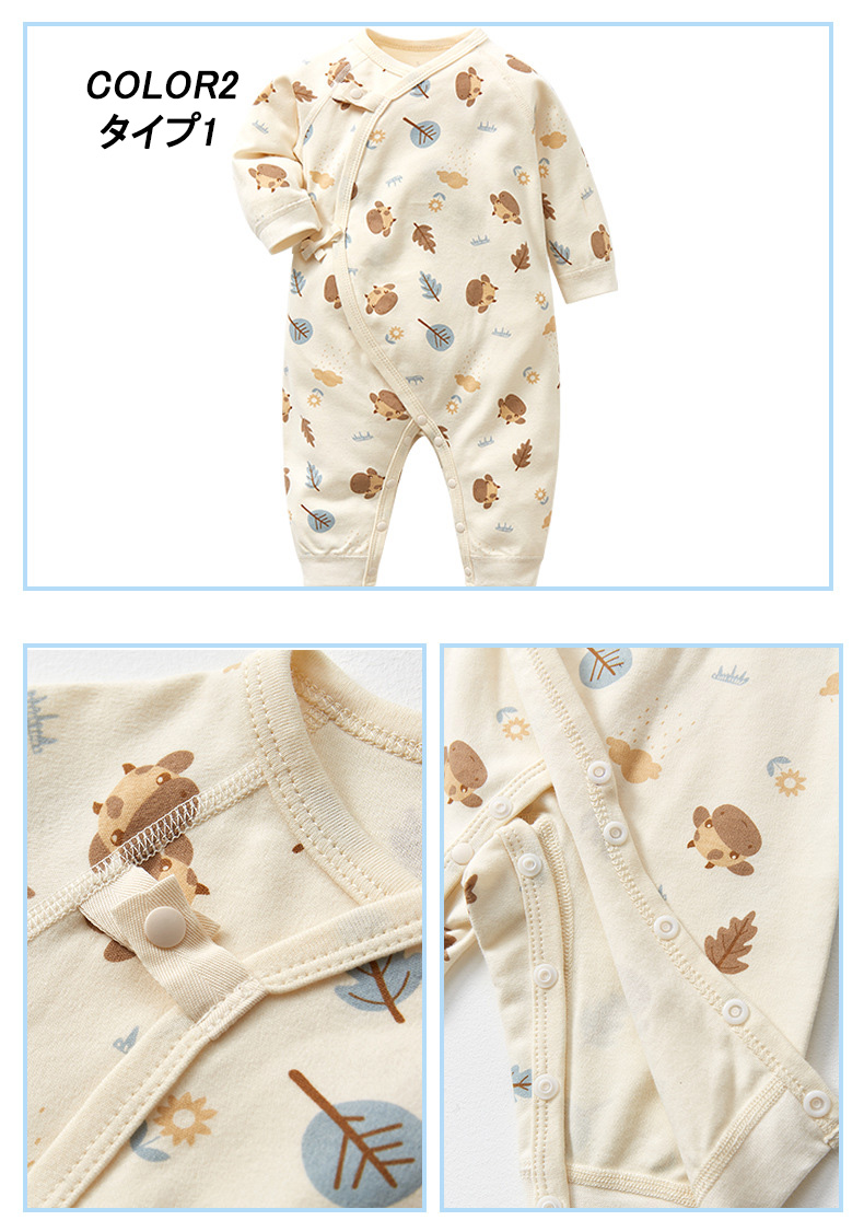 ・ロンパースの股部分はスナップボタン付きだからおむつ替えも簡単にできます。