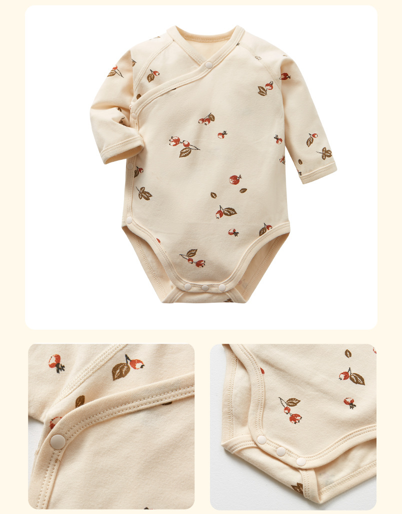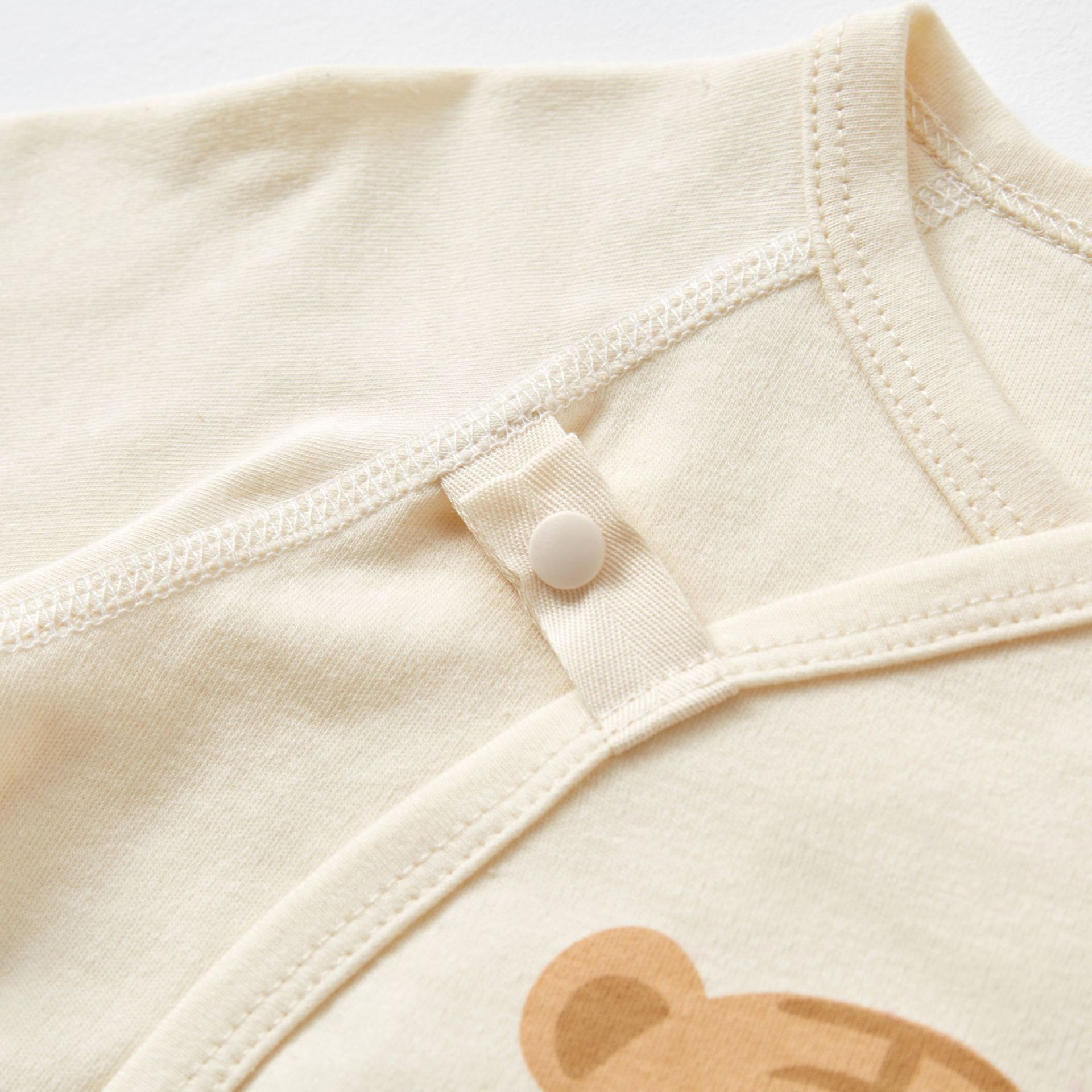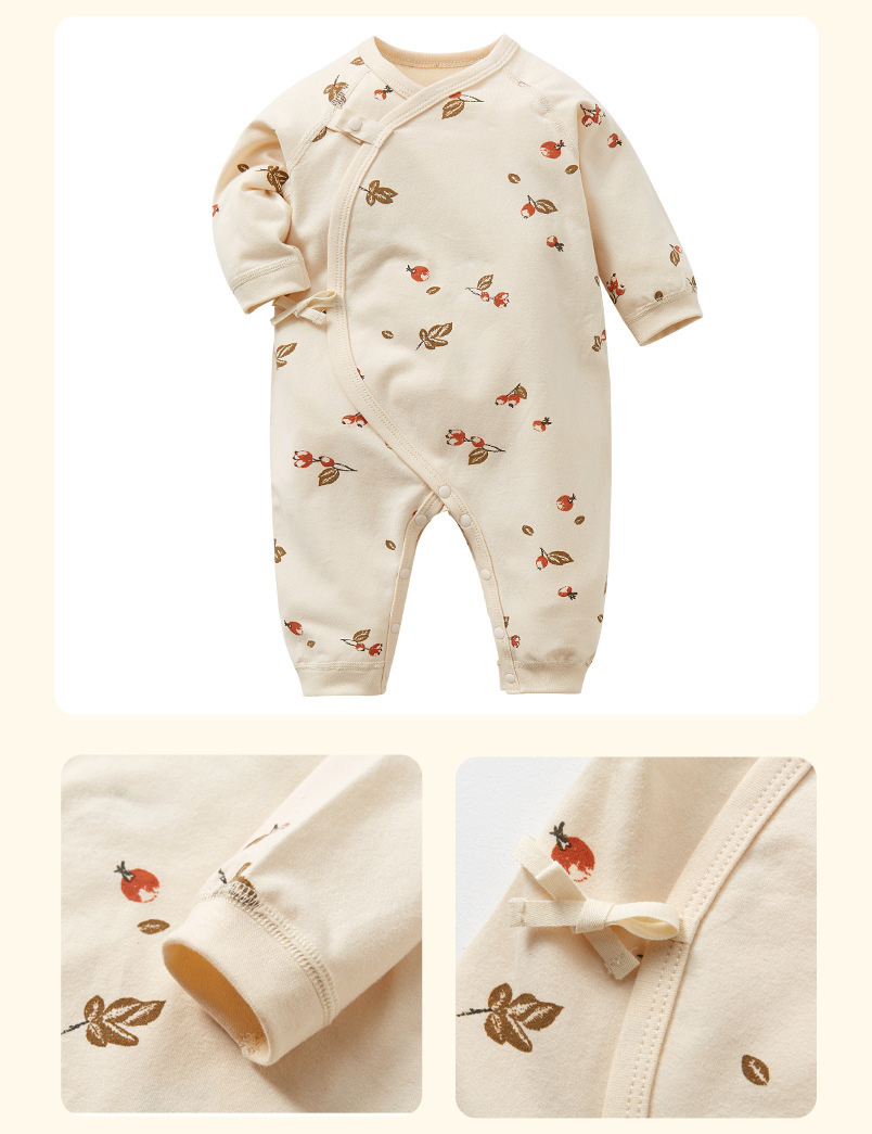 ・ロンパースの股部分はスナップボタン付きだからおむつ替えも簡単にできます。