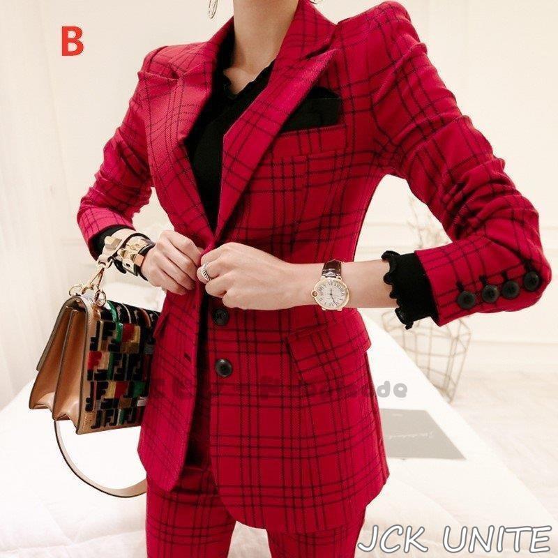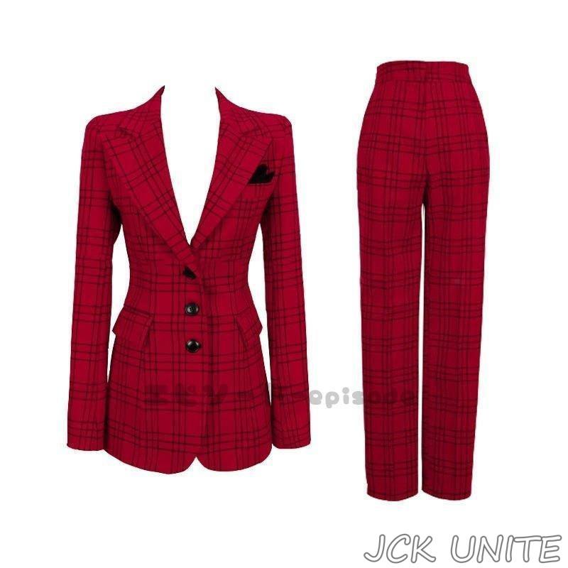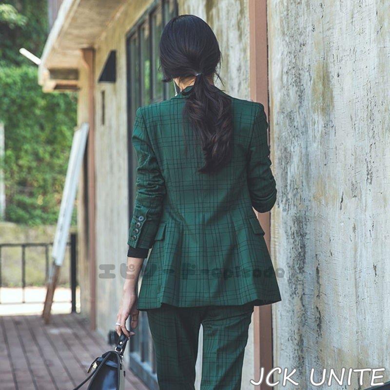 セットアップスーツ 2点セット シングル パンツスーツ フォーマル レディース スーツジャケット 春夏秋 テーラード OL スーツセット チェック柄