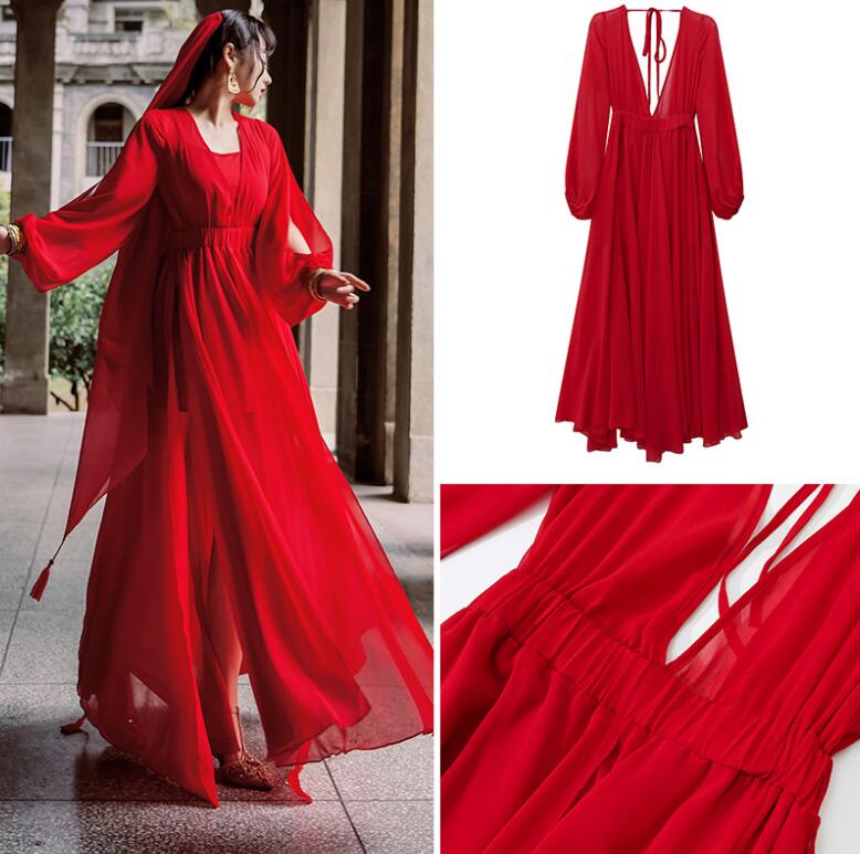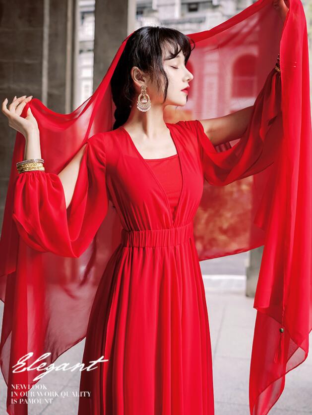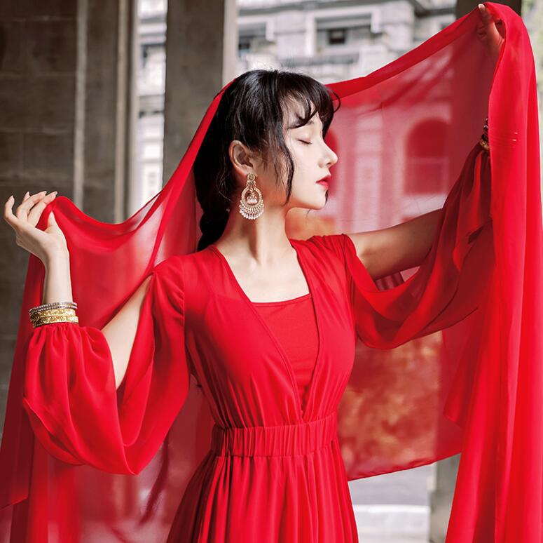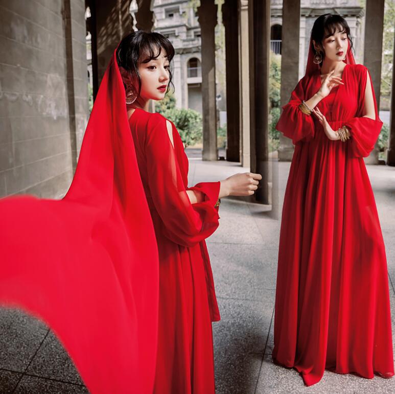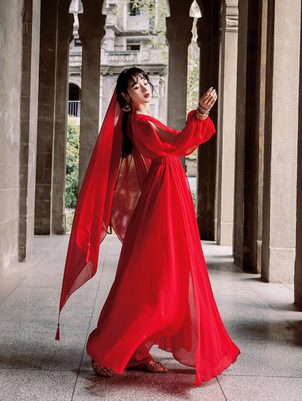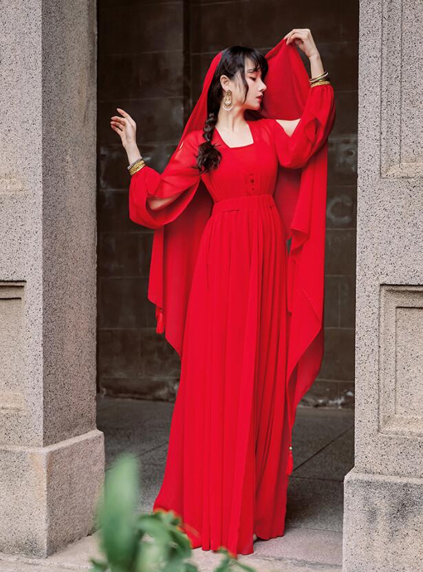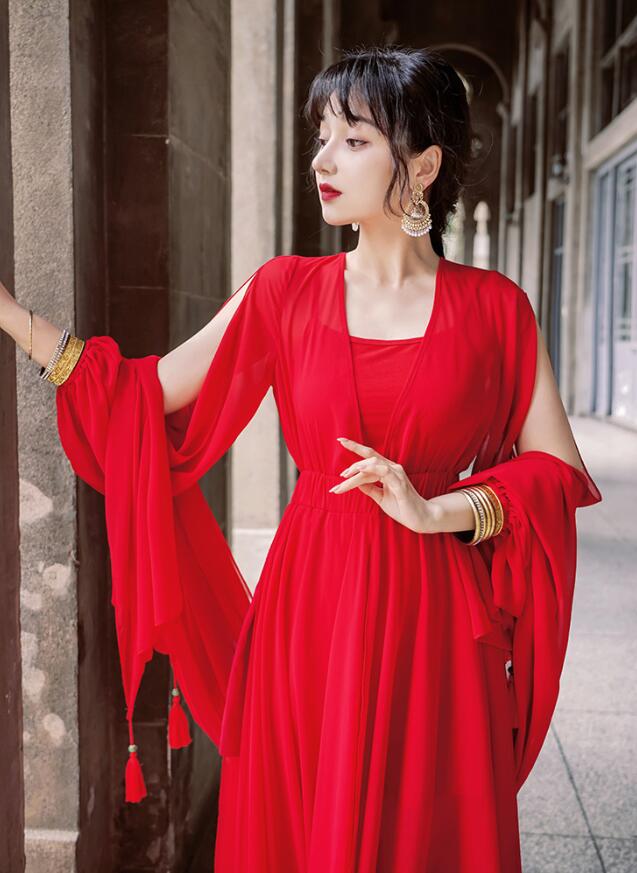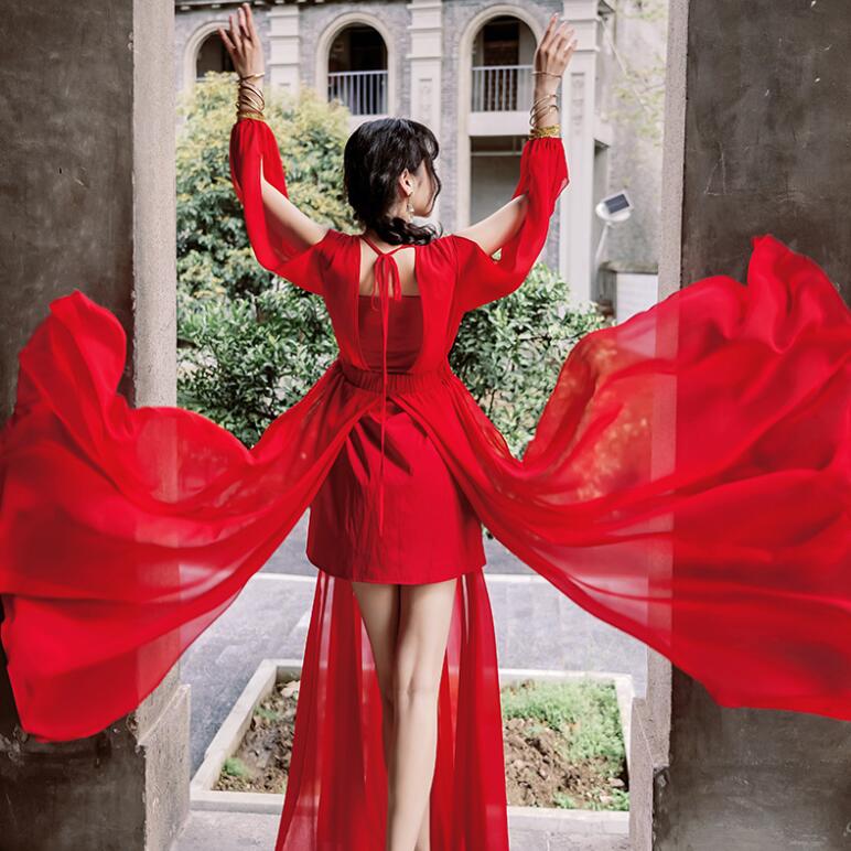 レディース ビーチドレス ワンピース ダンス衣裳 古典舞踊 エスニック 舞台ステージ演出服 バックレス 海旅行 ビーチウェア ダンスウェア 撮影写真