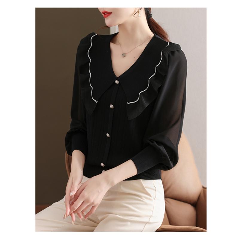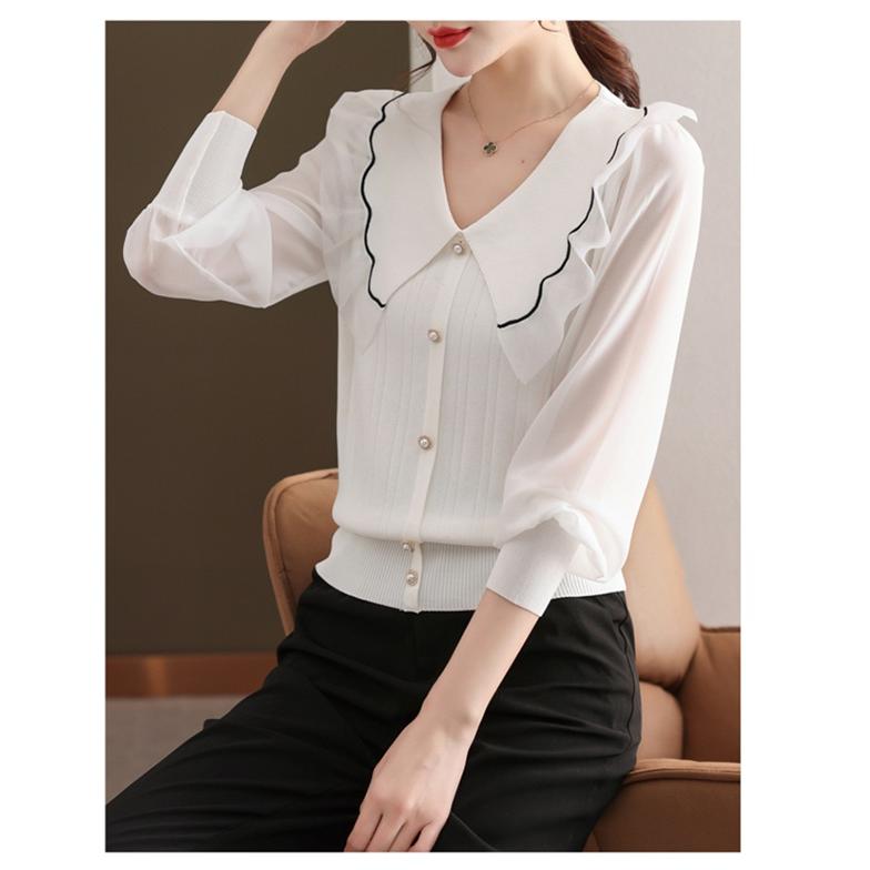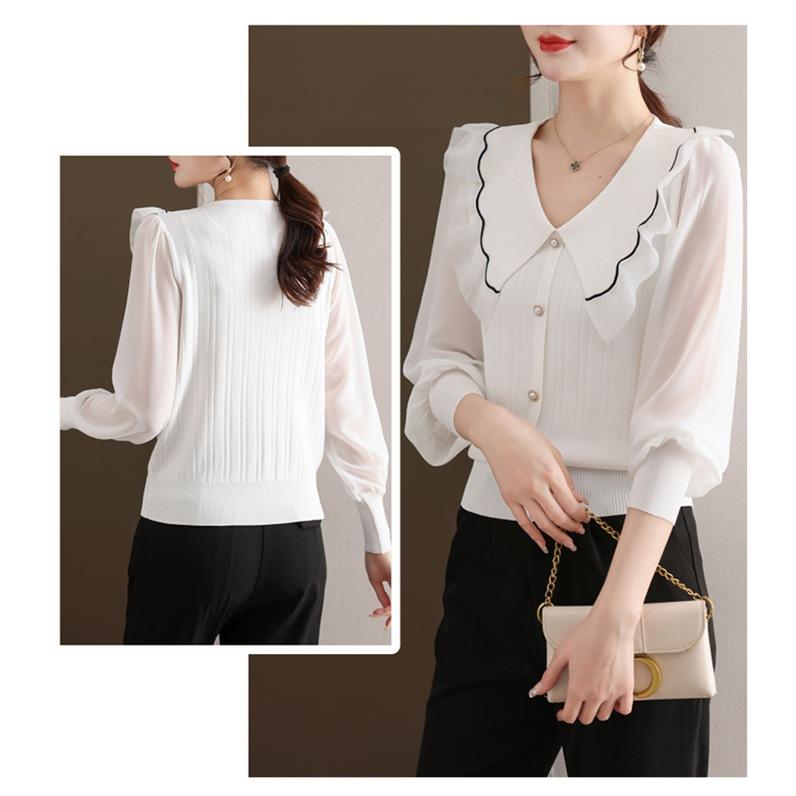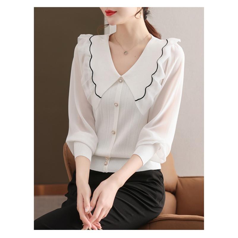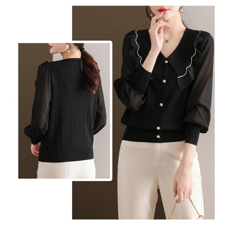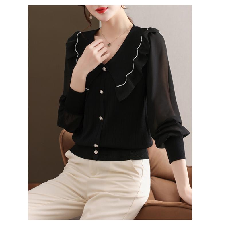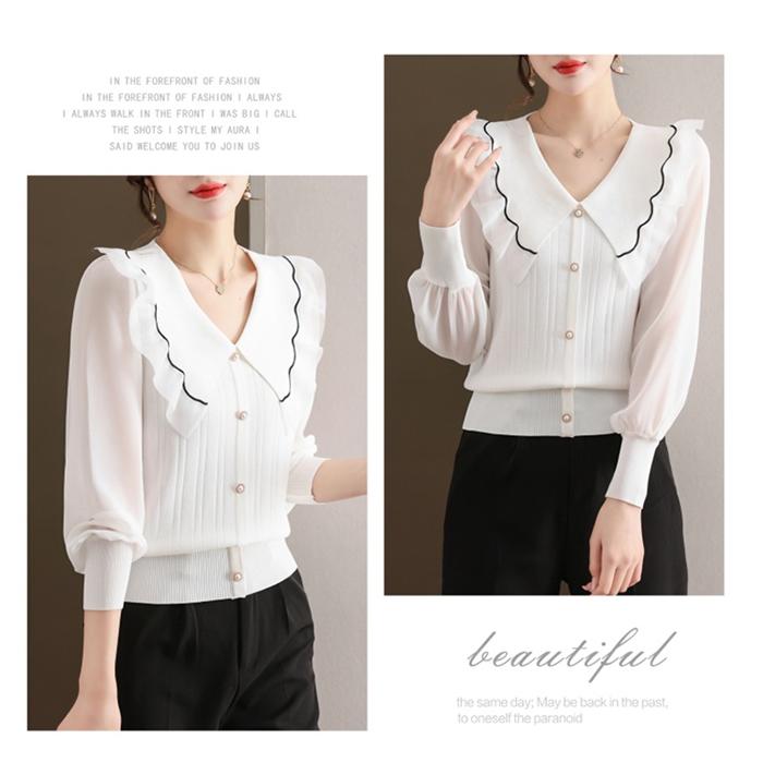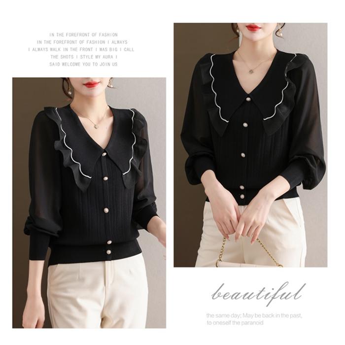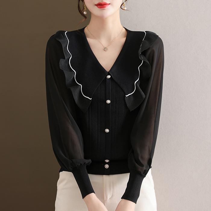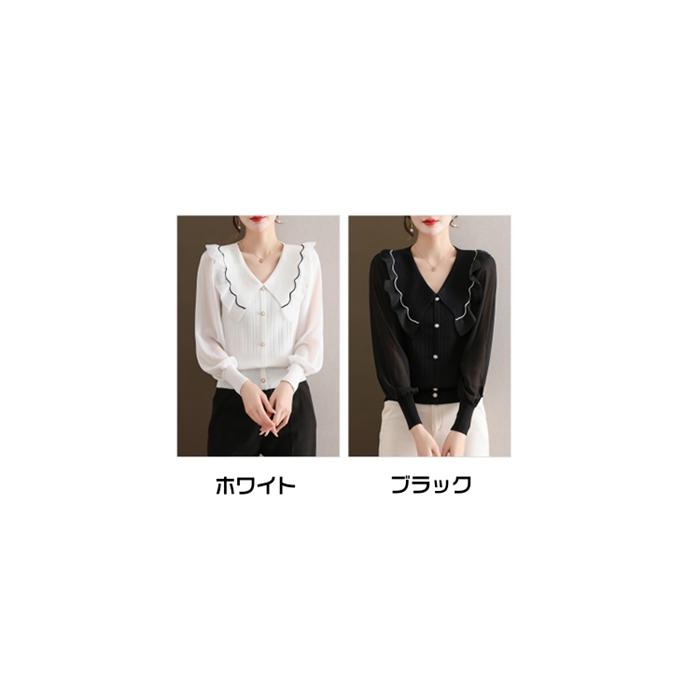 ニット レディース シースルー ニットトップス パフスリーブ 長袖 フリル Vネック トップス 無地 女性 カジュアル おしゃれ かわいい ファッション 通勤 春 秋