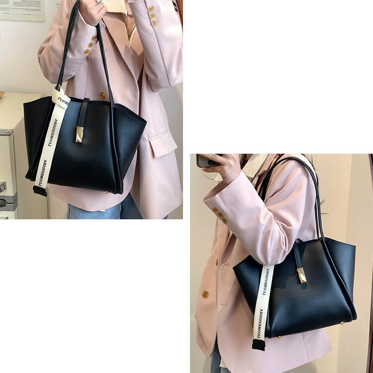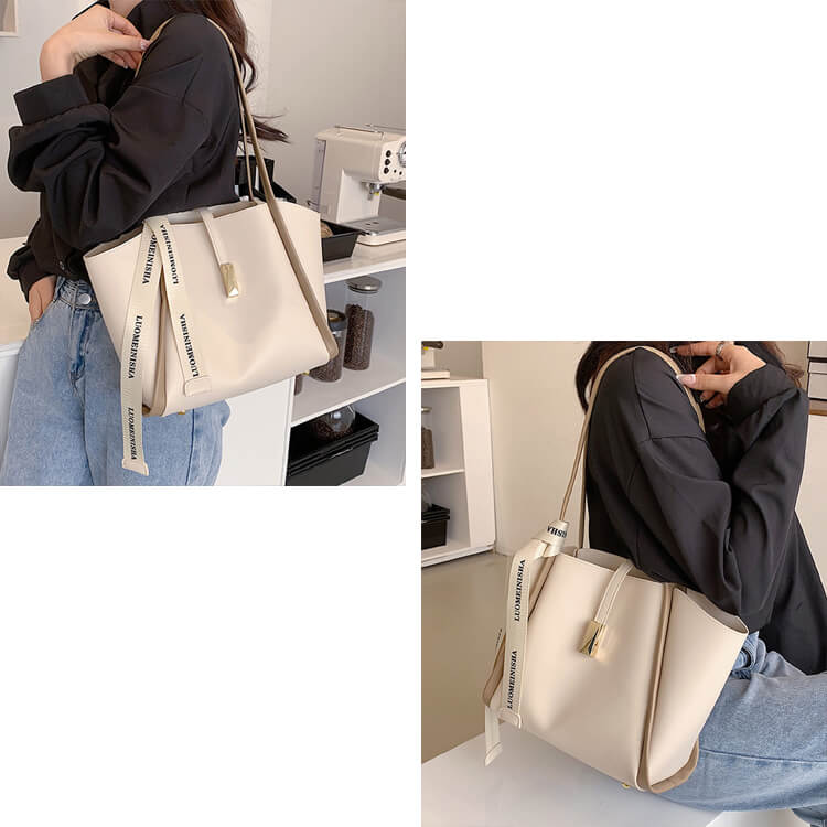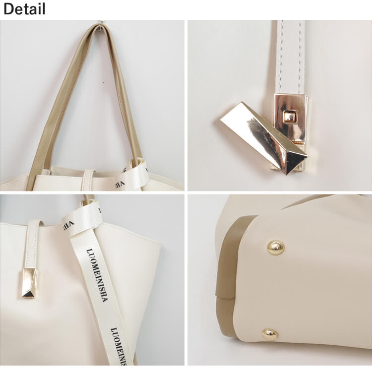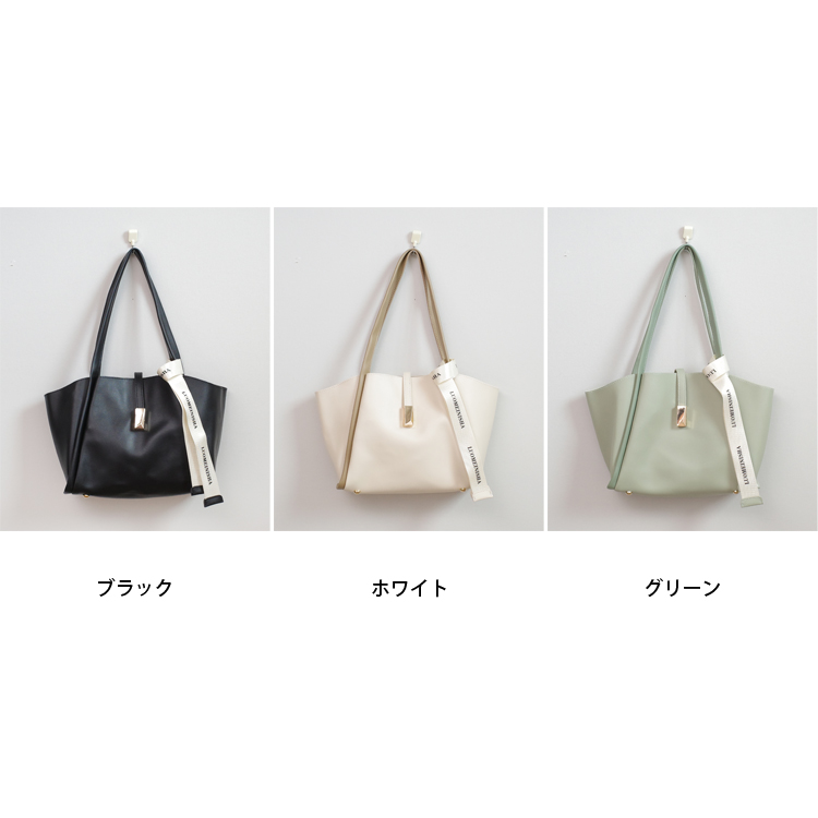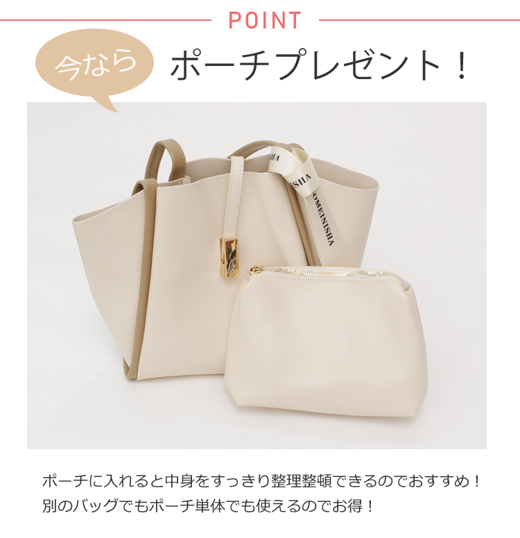 おしゃれな英字リボンと収納に便利なバッグと同素材のポーチ付き。